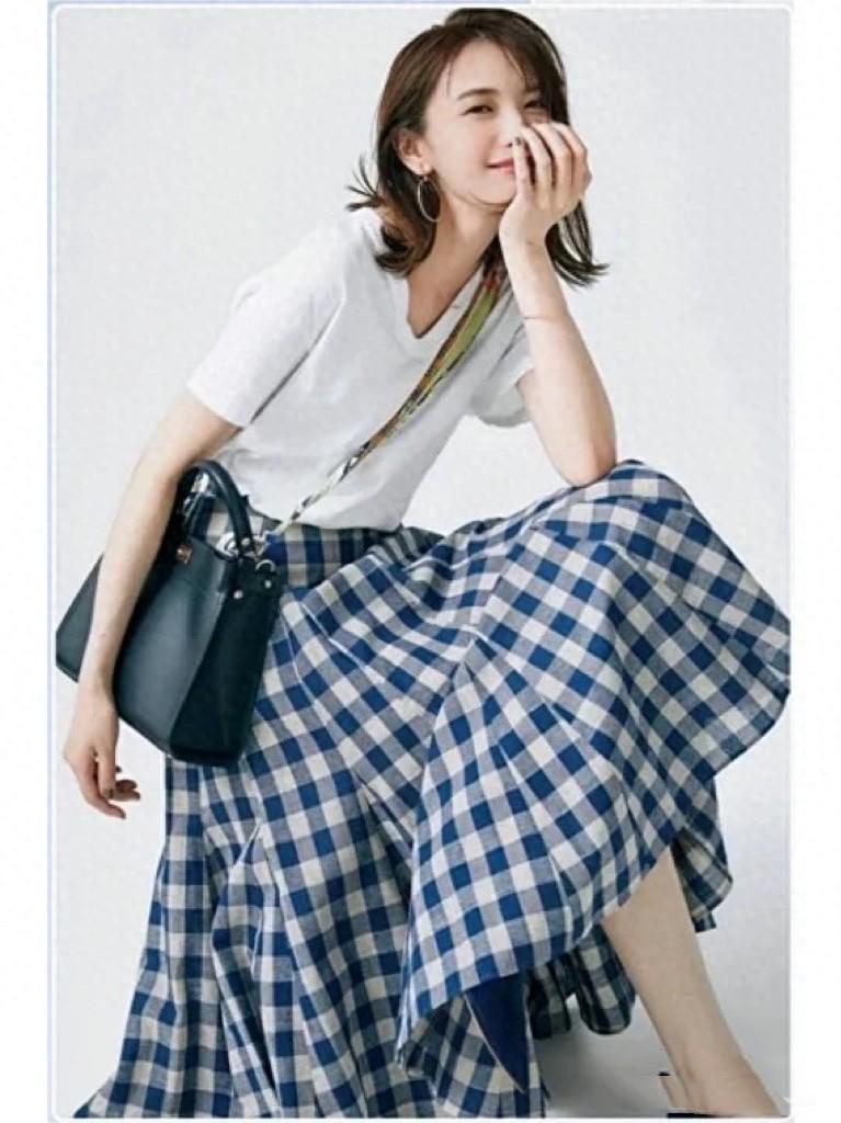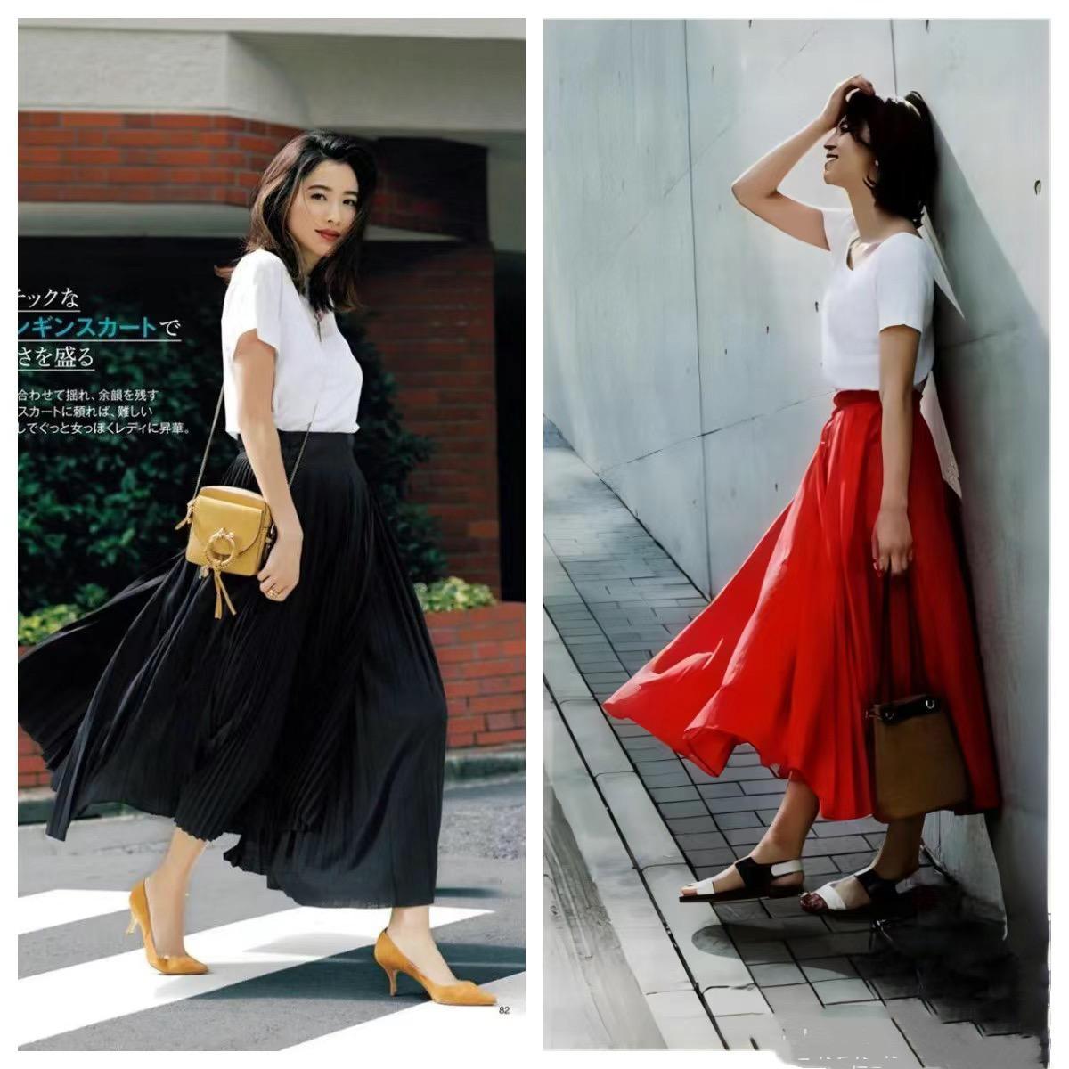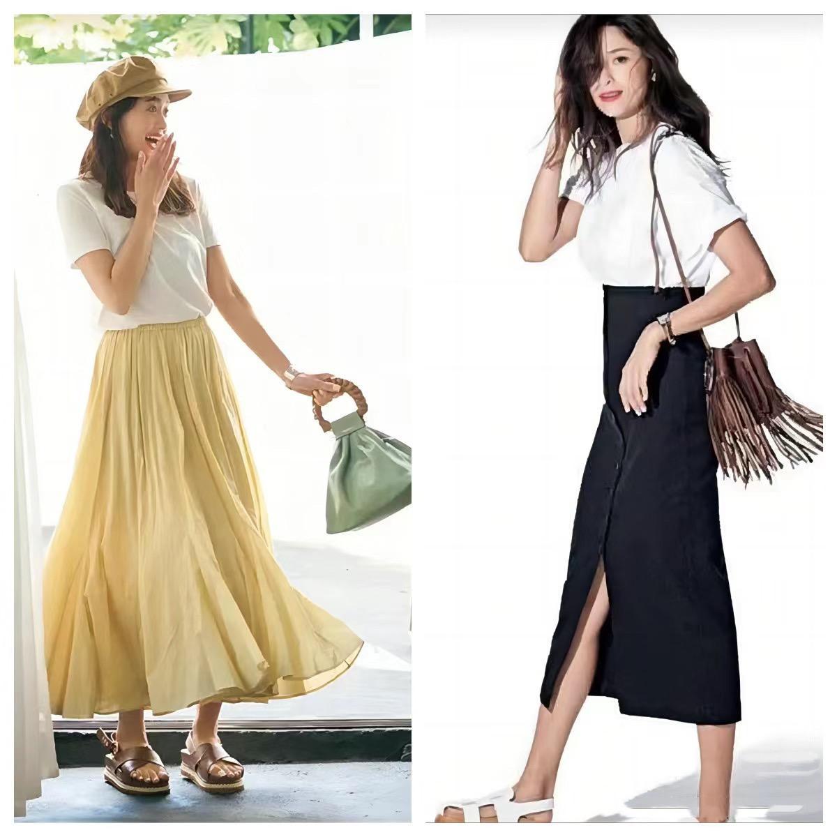 白T恤+半身裙,勾勒出腰臀線,瞬間變得嫵媚起來。