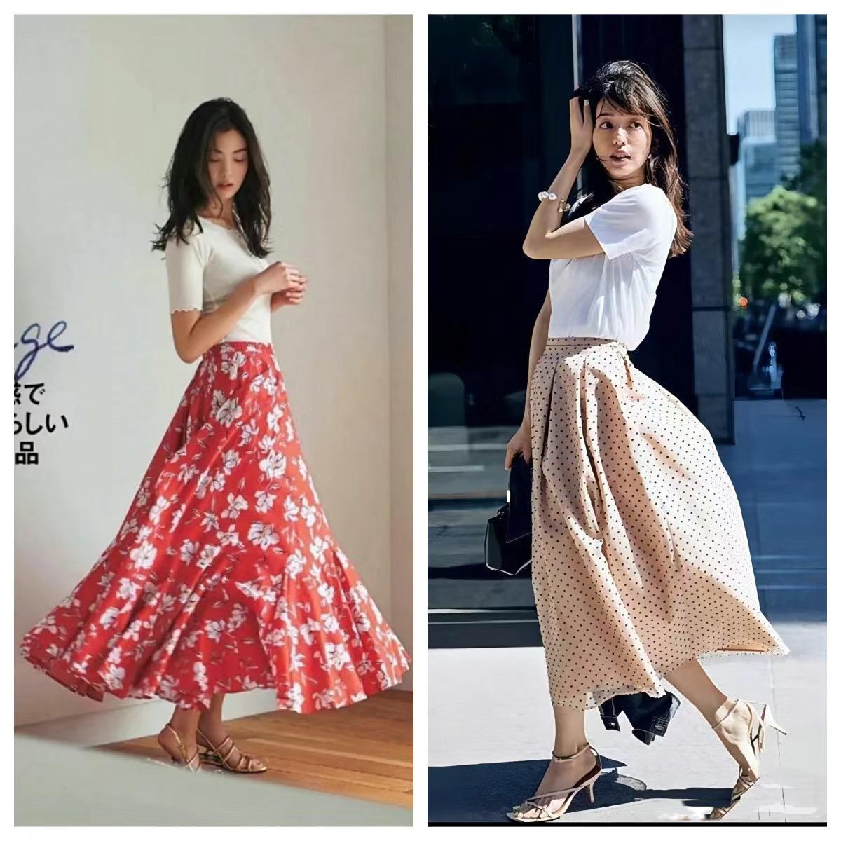 女人味更濃意一點的印花半身裙,可選高級配色、也可以選擇明亮配色。