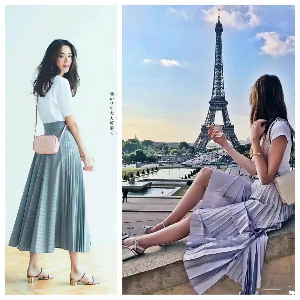 優雅又顯貴的醋酸半身裙,也屬於一種更溫柔的單品。
