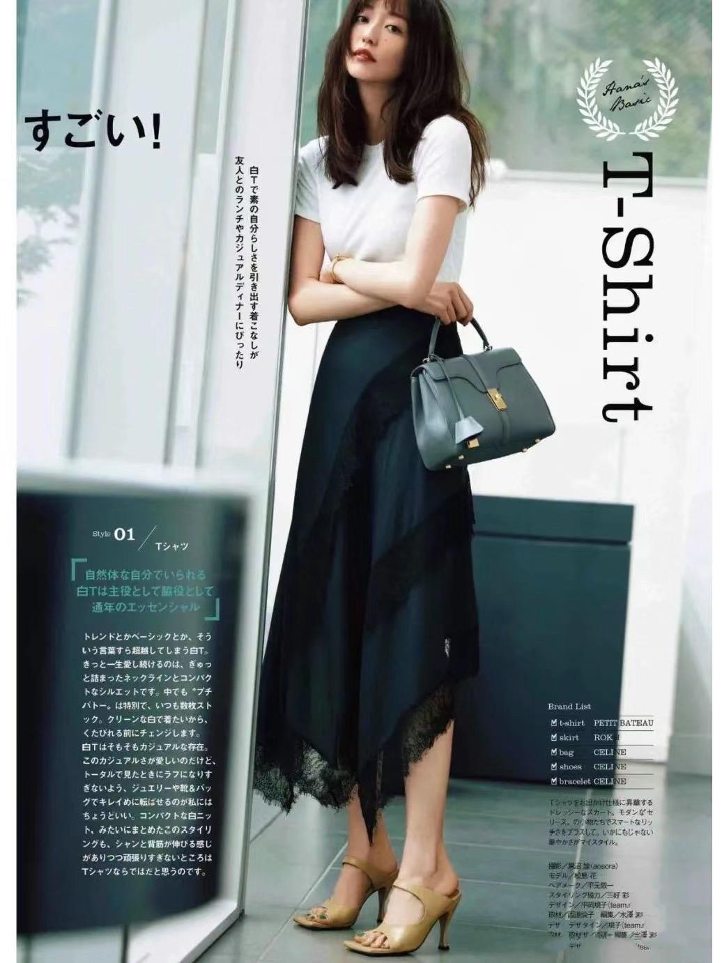 隨意的配白色T恤,也是時髦又高級,很有女人味。
