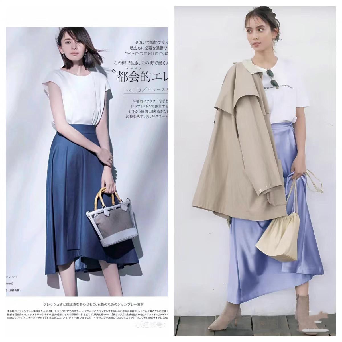 尤其是淺色系的醋酸半身裙,配小開叉剪裁,更有女人味。