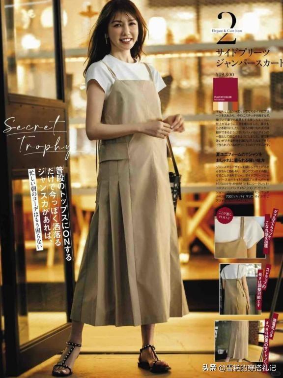T恤除了普通的上下系列的穿搭之外,我們也可以選擇疊穿的技巧,去讓T恤和吊帶裙互相搭配。這樣的穿搭可以讓造型更具個性和時尚感,同時顯得活力十足,頗具有減齡感。不過T恤的版型要儘量修身,都則會讓上半身顯得比較臃腫。