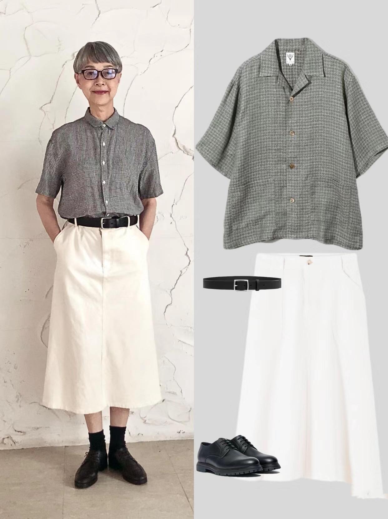 灰白格子的棉麻襯衫,也讓人覺得從容自在。