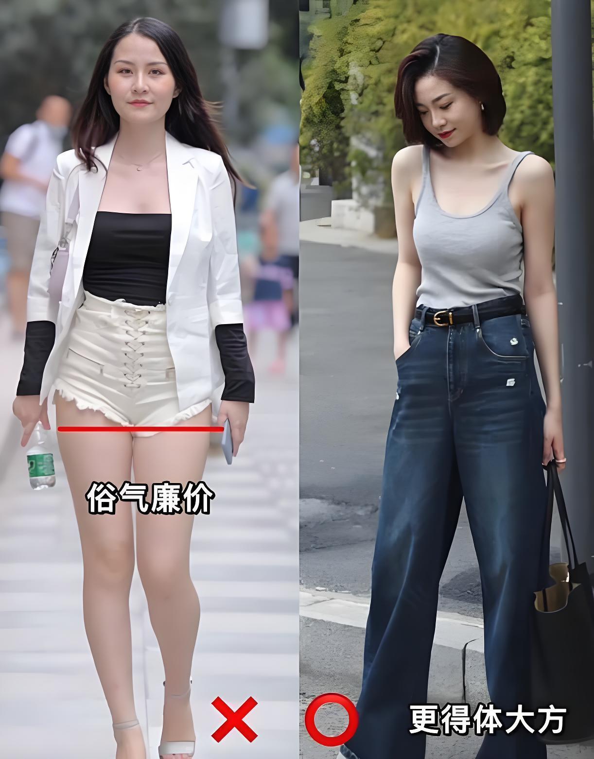 夏天裏的超短褲,雖然相對熱辣,但是上了年紀的女人穿起來,就滿是廉價俗氣感。