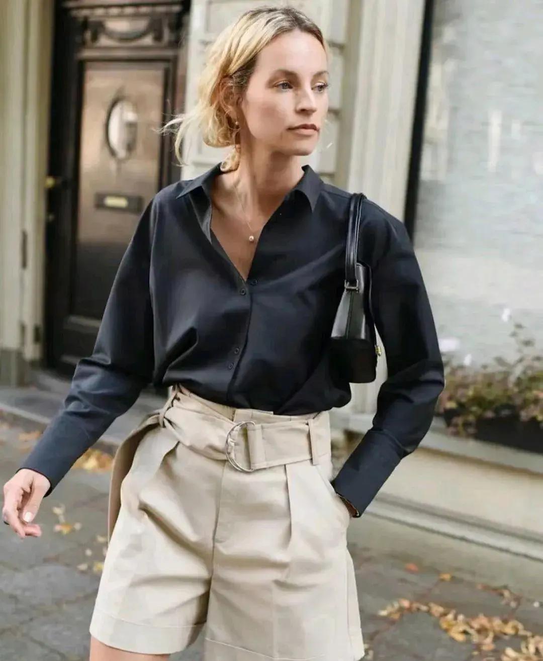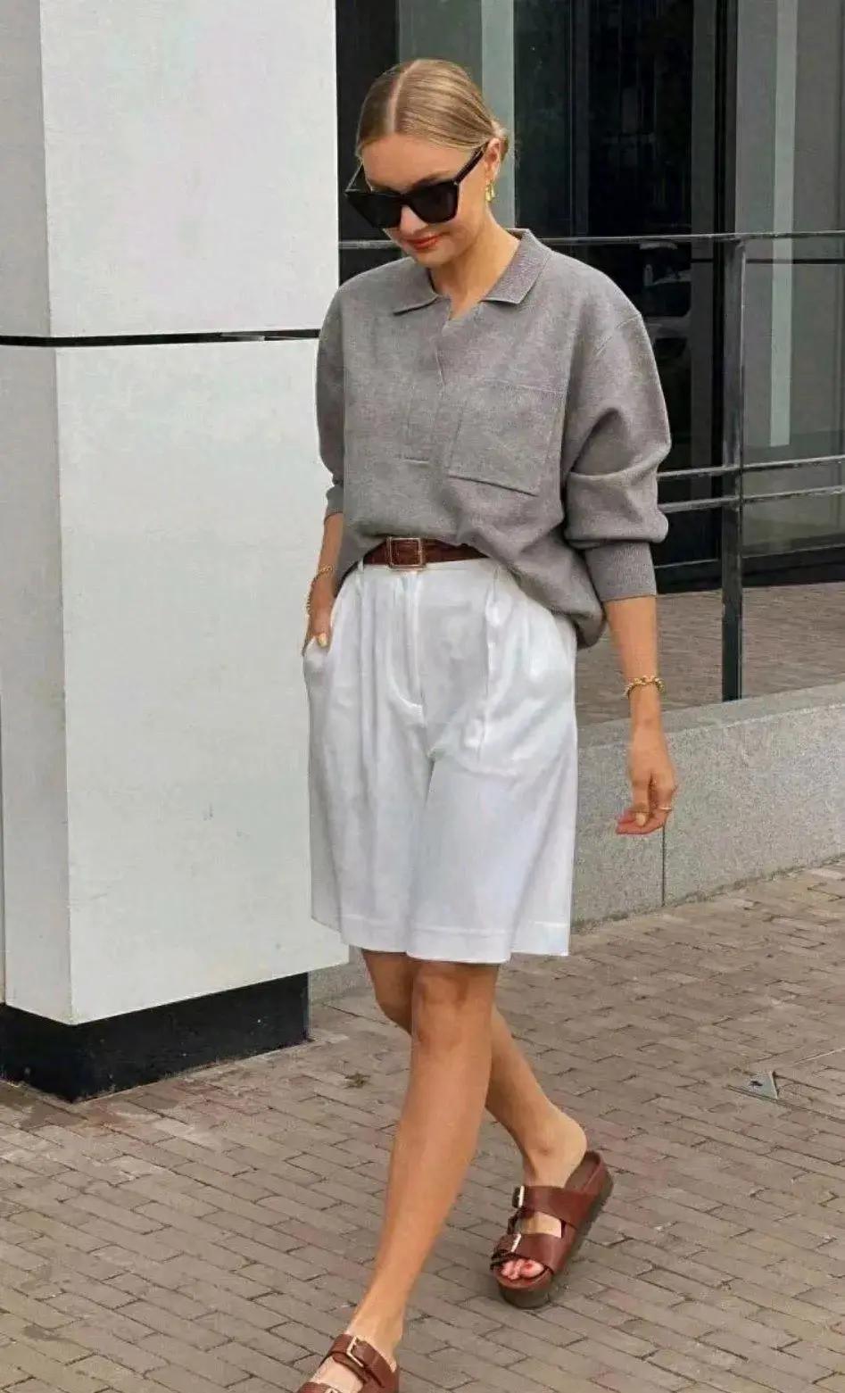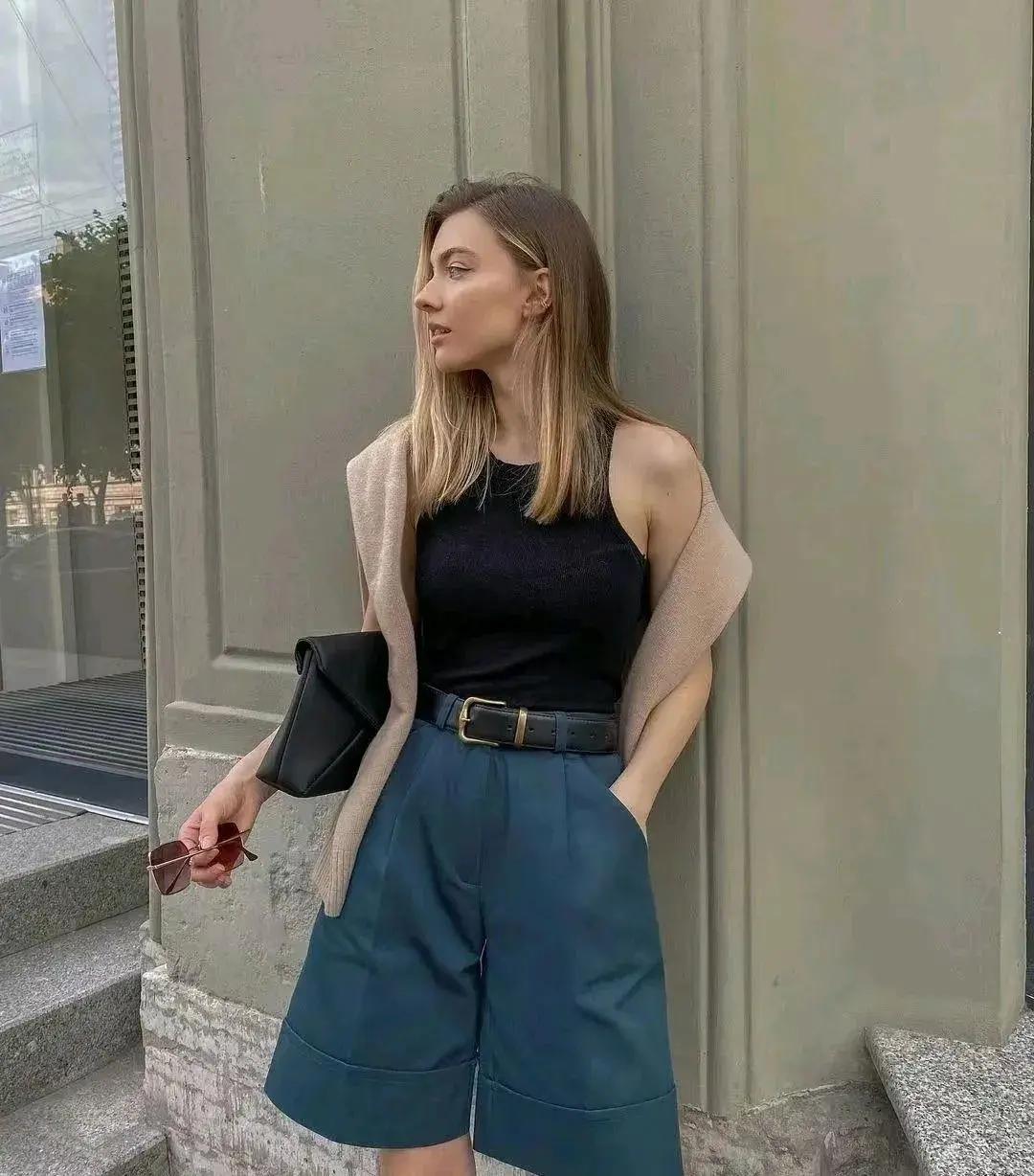 在夏天如果你不想選擇太短的褲子來穿,那麼就入手這種五分褲,只要提高腰線後,就可以輕鬆打造出高挑感,輕鬆拉長下身比例。