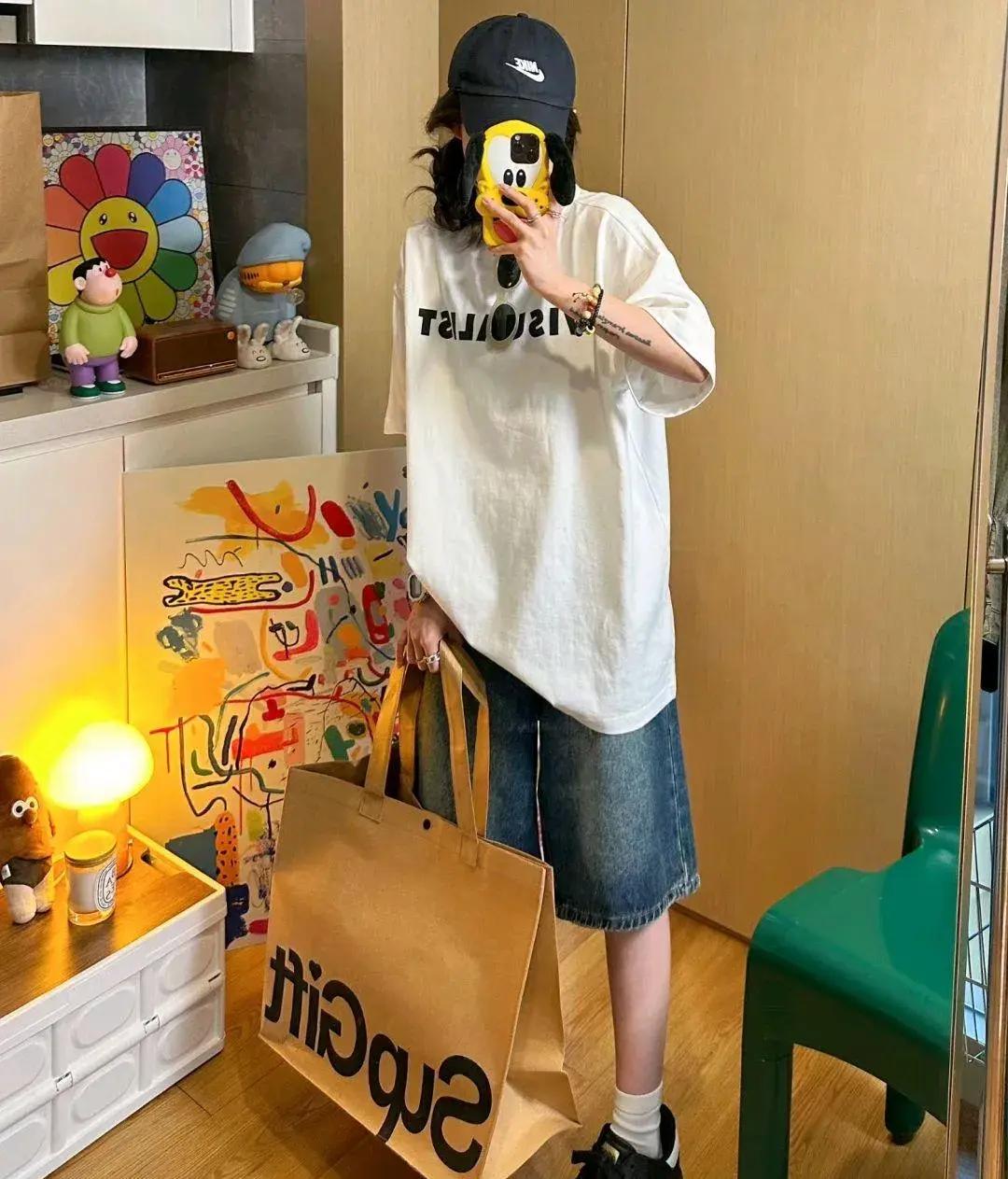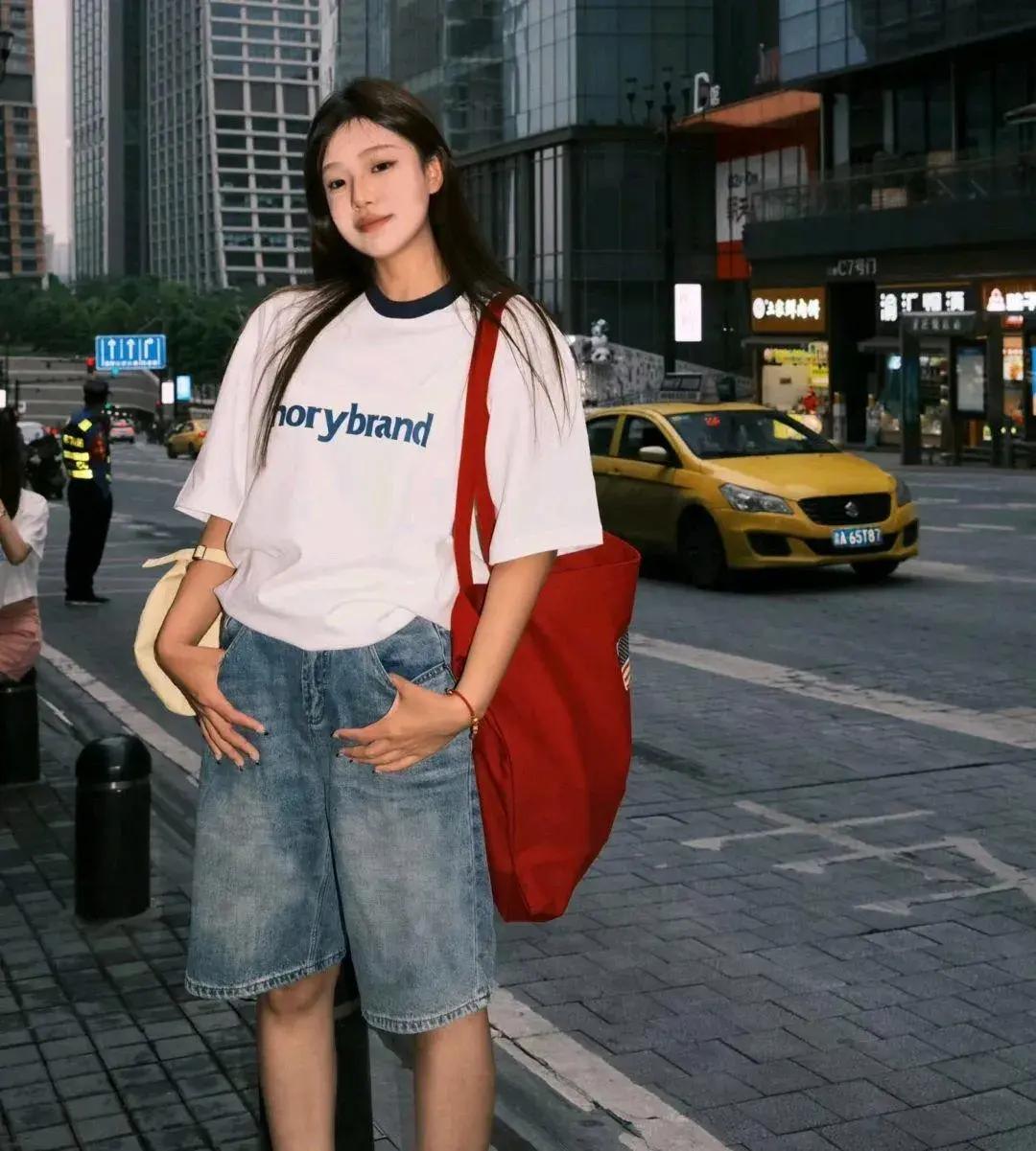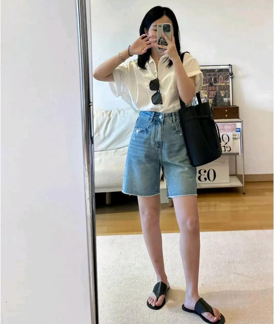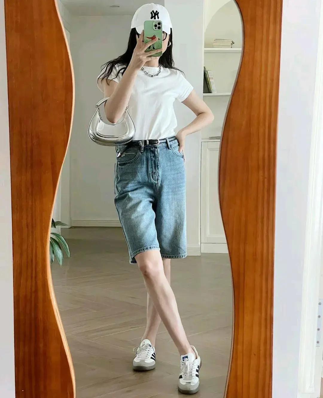 夏日的穿搭,總該是少不了白色t 和牛仔短褲的,若是覺得自己駕馭不了太短的短褲,那麼就選擇五分的爸爸褲。