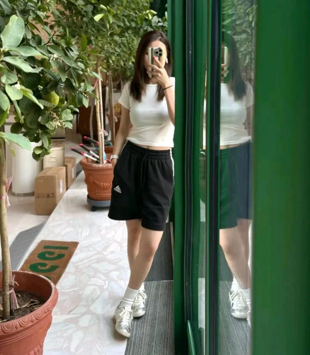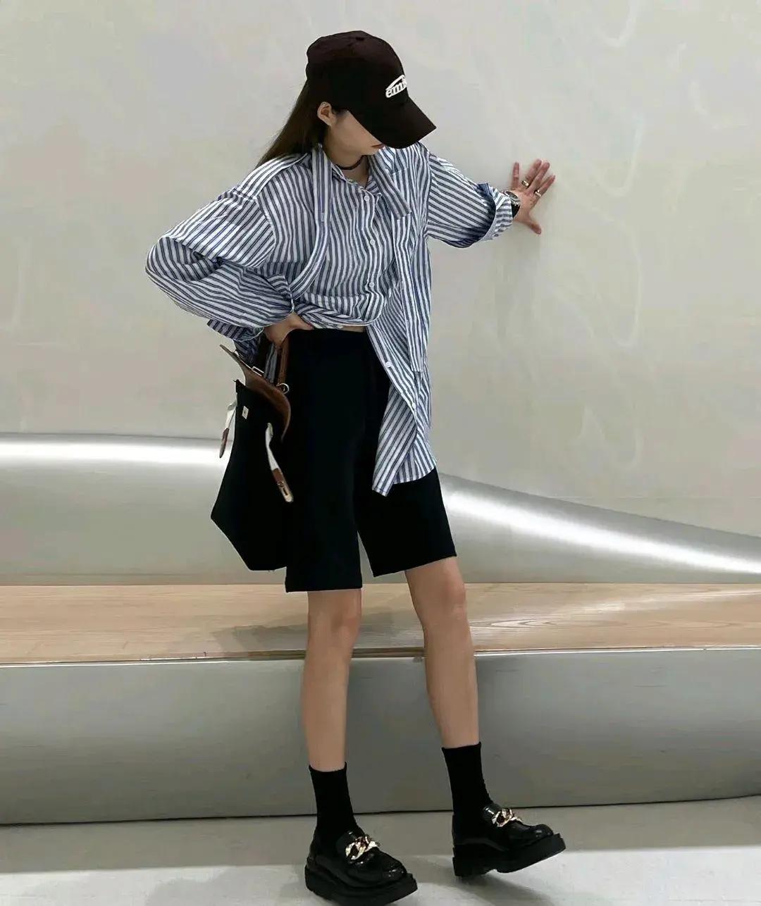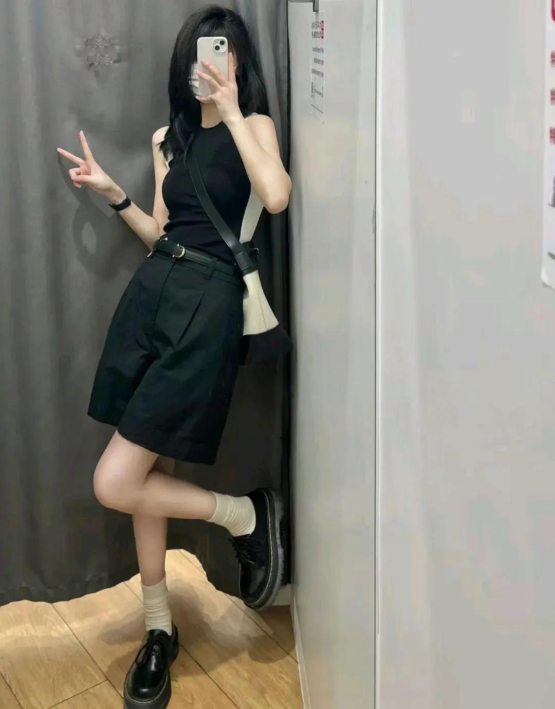 上長下短的搭配,小個子女生可太適合了,腿部線條也能輕鬆被拉長,舒適又涼快。