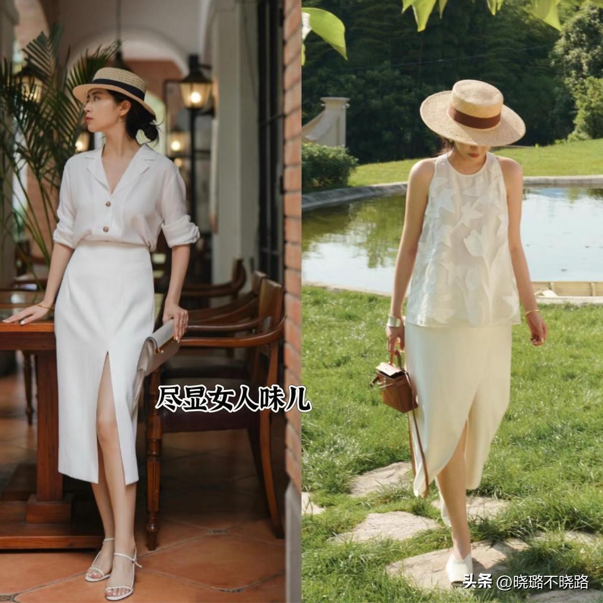太豔俗的配色,會顯得很沒檔次,過於沉悶的配色,看上去又會很壓抑。夏天穿長款下裝,應當選擇乾淨清爽的配色,例如亮彩色+白色or牛仔藍+淺色,養眼且治癒。