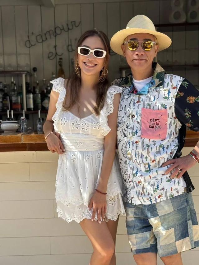 應採兒本來就比丈夫小16歲,再加上這一身減齡穿搭,這也難怪看起來像他女兒。