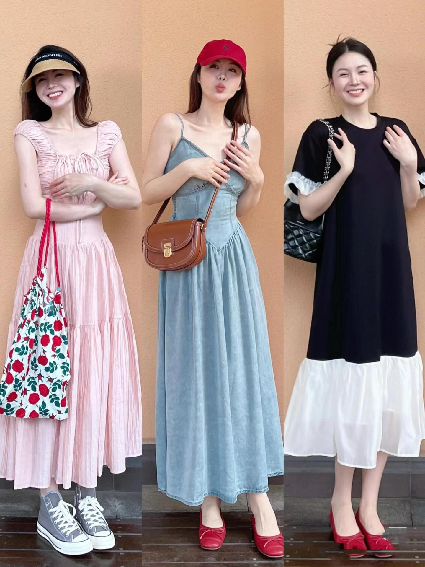 過膝連衣裙,一定要露出腳踝。腳脖子的纖細、是塑造輕盈感的關鍵。過膝連衣裙配淺口單鞋,讓夏季穿搭更加清新暢快。