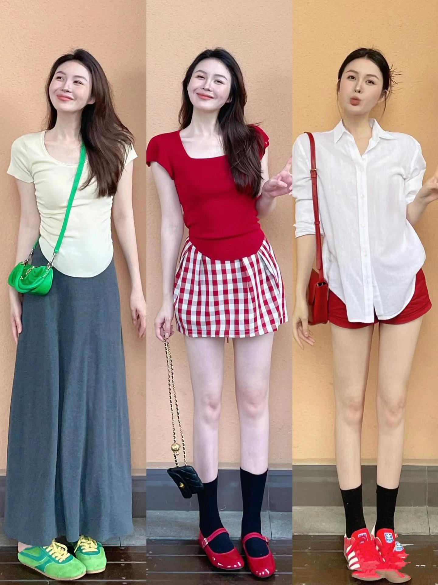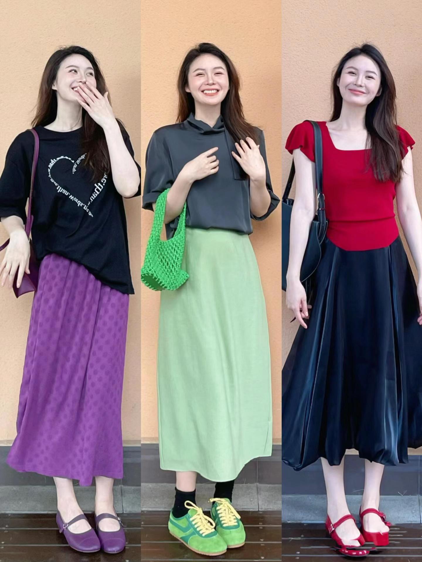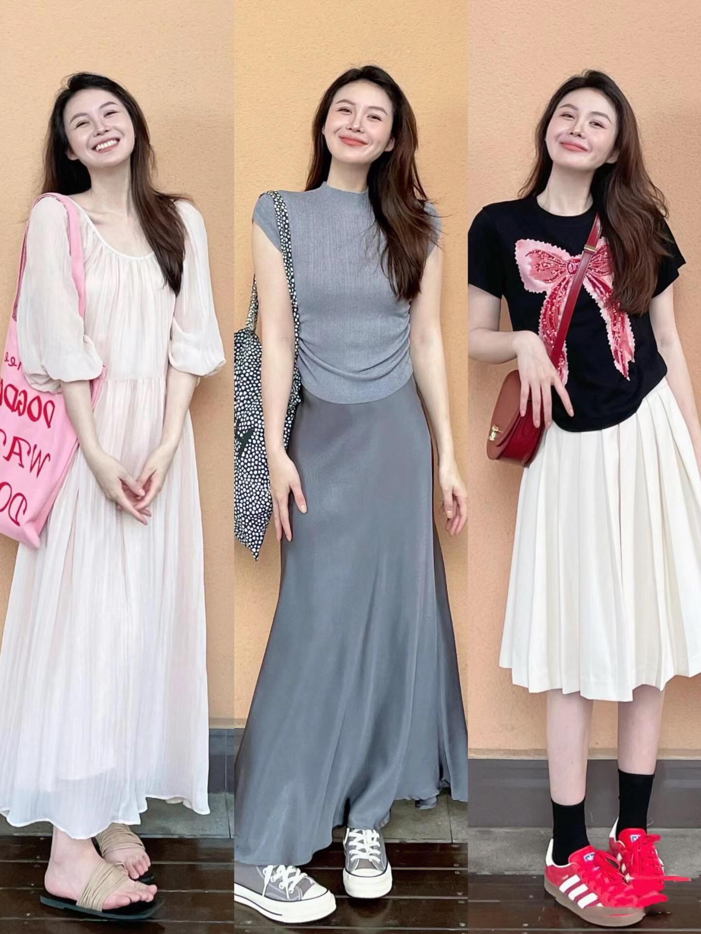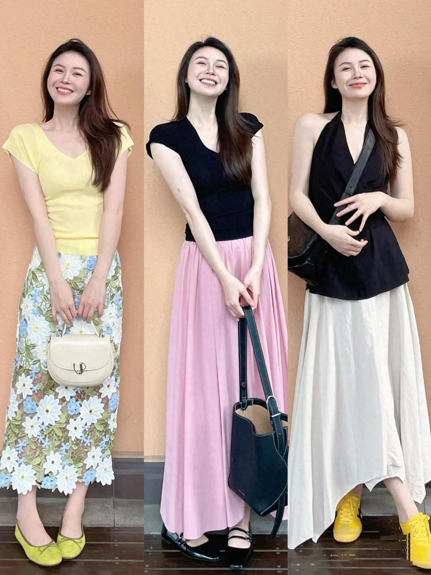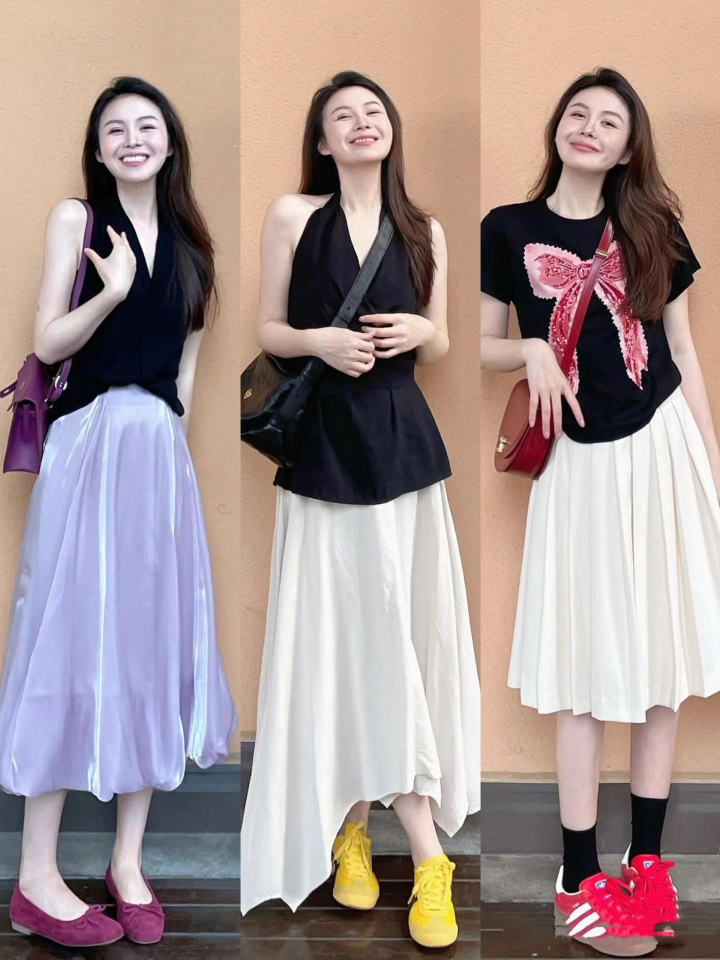 比如掛脖款的上衣,可以配高腰的傘裙,適當的搭配收腰剪裁,把高腰線、小細腰、小細腿、腳踝線條都勾勒出來,簡簡單單就時髦洋氣。