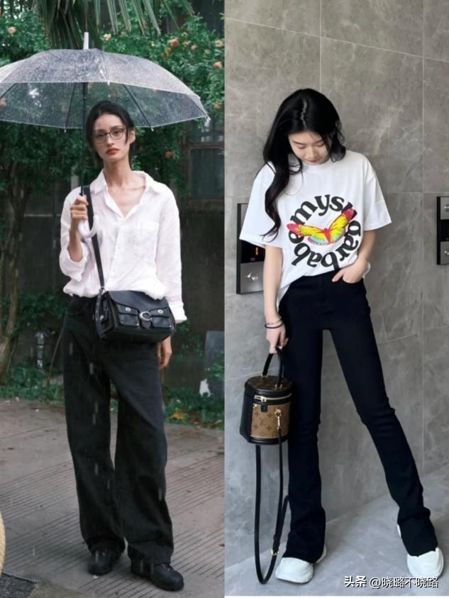 夏天穿長褲難免會有一點點閉塞感,所以我們就需要調節自己身材末端的皮膚露出佔比,我們把褲子的長度控制在遮過腳踝,但是不遮擋腳背的長度,其實也可以打造出適當的露膚效果。如果是個子比較矮的女生,也可以嘗試穿七分褲或者九分褲,露出小腿部分也很顯瘦。