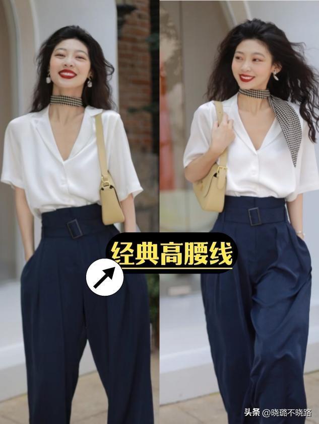 夏天穿褲子想要遮肉顯高是最基本的,剛需那麼高腰設計就應當成爲你造型當中的一個關鍵點,爲了抬高你的腿長的起點,我們就需要把高腰的設計放置在你肚臍上的位置,視覺上去平衡出恰好的顯高特點。