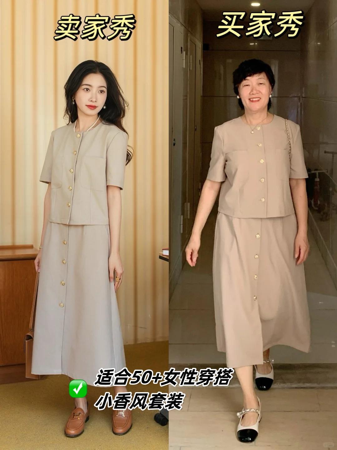 夏季小香風的套裝也非常適合50+女性,輕便穿搭,一鍵搞定,解決每日穿搭的難題,短款的小香風對於遮肚、小個子非常友好。