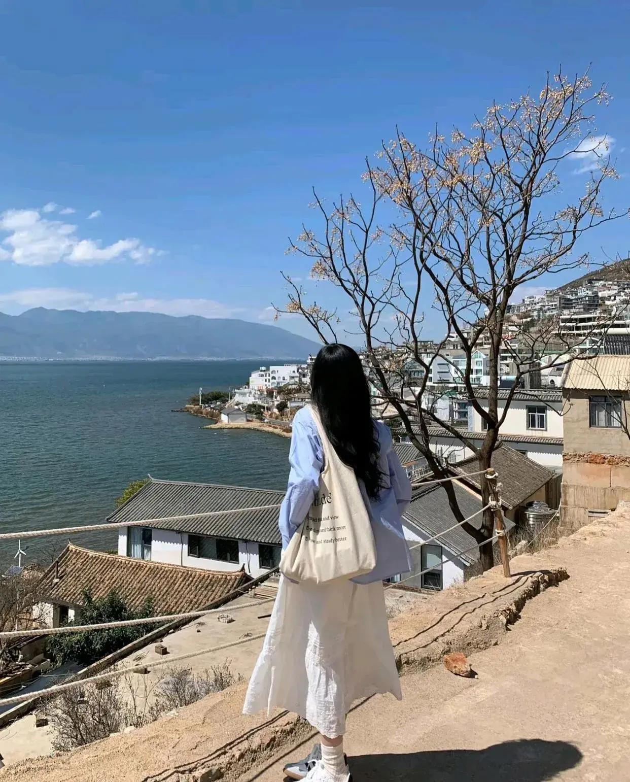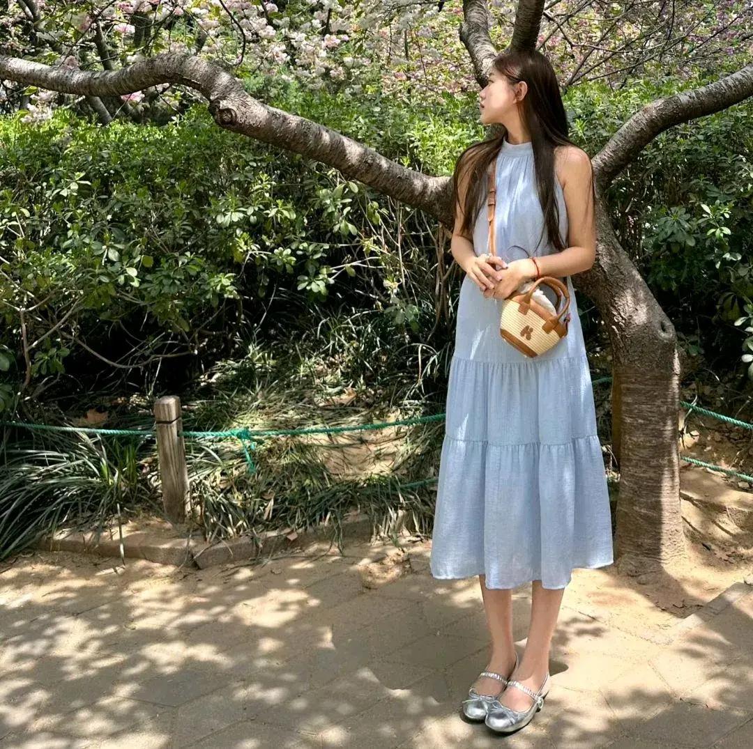 趁着好天氣說什麼也不能只待在家裏面,約上三兩好友一起去出遊吧。藍色無袖連衣裙,這個低飽和度看起來也太襯膚色了,腳上踩着一雙銀色瑪麗珍單鞋,讓整個人看起來是那麼精緻,溫柔極了。