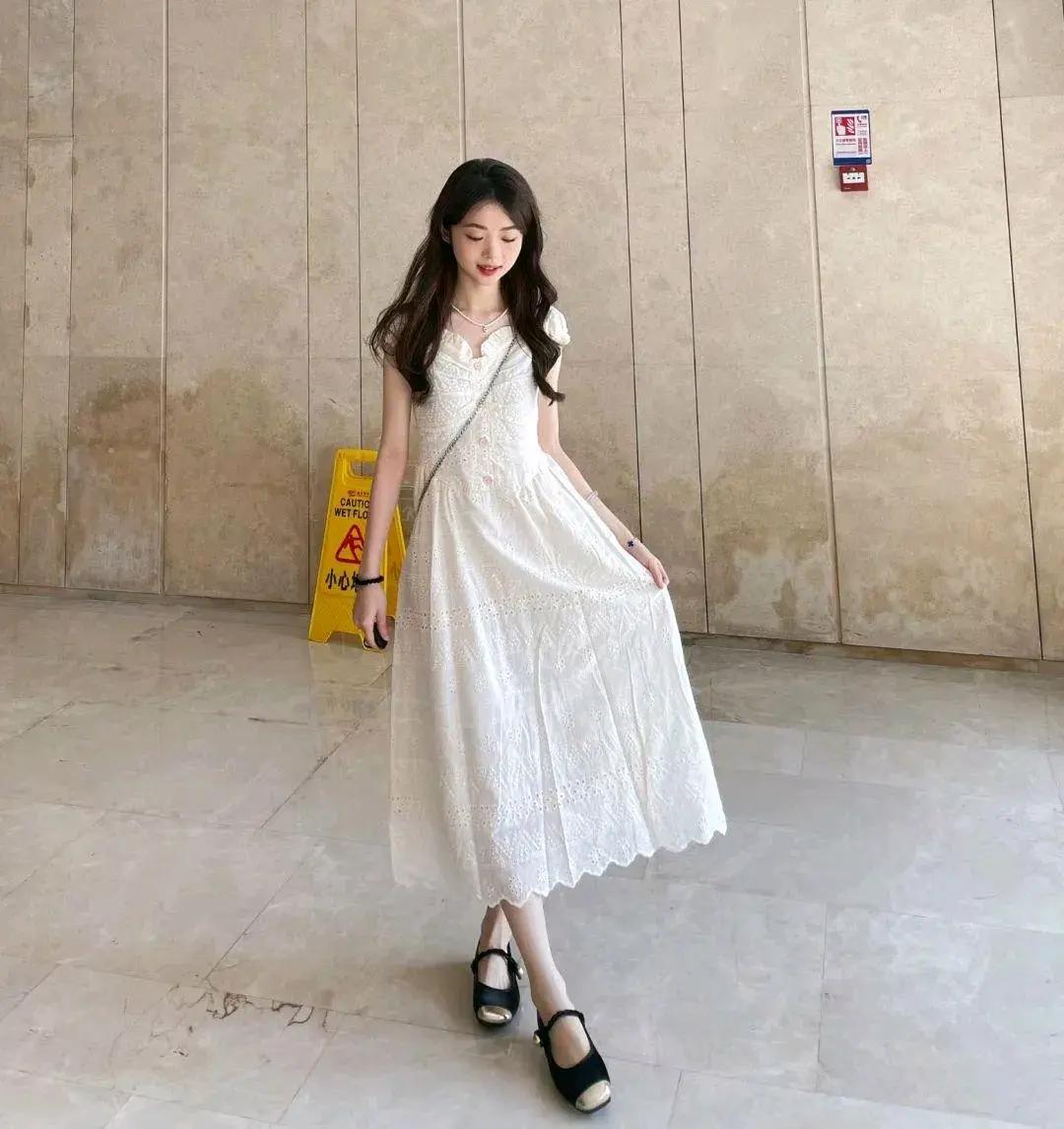 在這個夏天,誰能拒絕小白裙呢,偏法式風的一款白色連衣裙,搭配一雙黑色瑪麗珍單鞋,黑白配可太經典耐看了,a 字版型的裙身,能輕鬆遮掩起身上的缺點,梨形身材也能輕鬆hold 住。