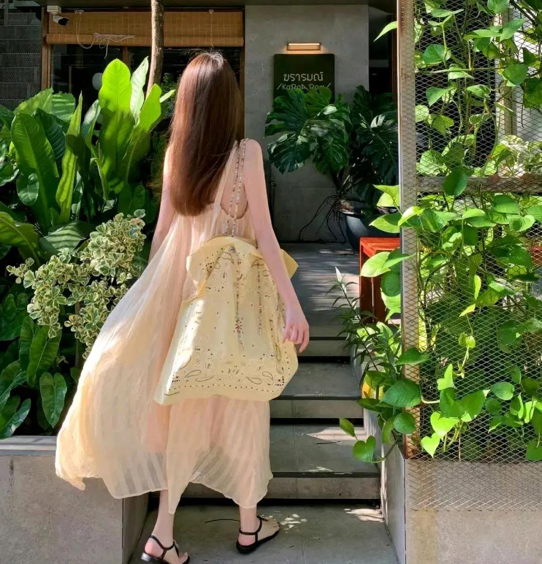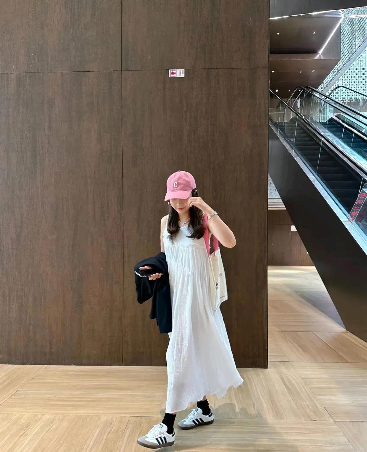 連衣裙+涼鞋的搭配,真的太適合夏天了,簡簡單單的就很好看。吊帶款式,可太適合夏天了,穿起來很清爽涼快,不管是出門逛街,還是約會都很適合這一套。