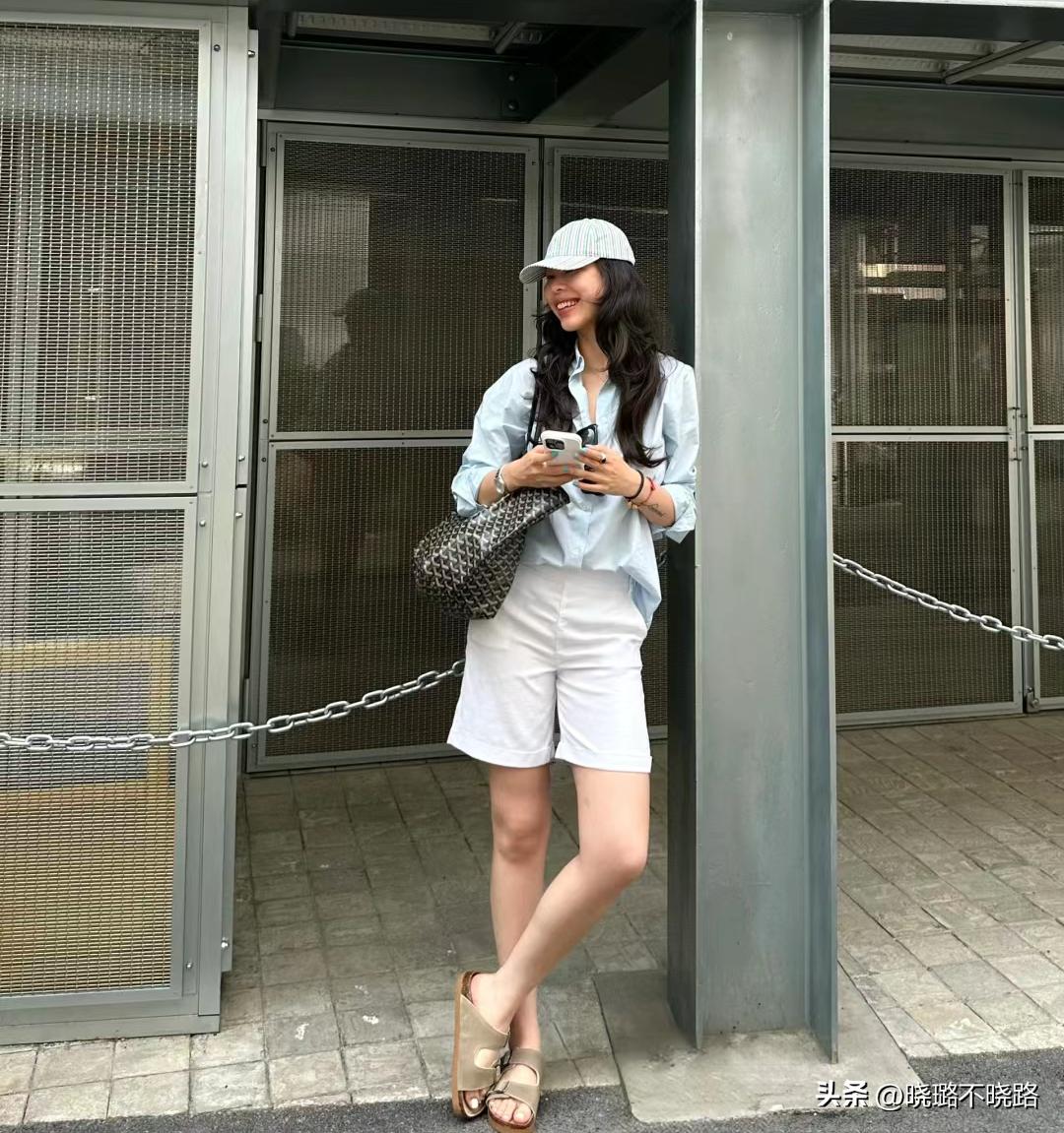 爲了保持清爽乾淨,夏季大家也可以多嘗試一下,這種剛好蓋住1/2大腿的超短褲,露出纖細筆直的大長腿,配上厚底的勃肯涼鞋,在保證留白的基礎上,進一步的打造了時尚感。而且牛仔材質的超短褲更加的有型,對於腿部有柔柔的女人也非常友好。