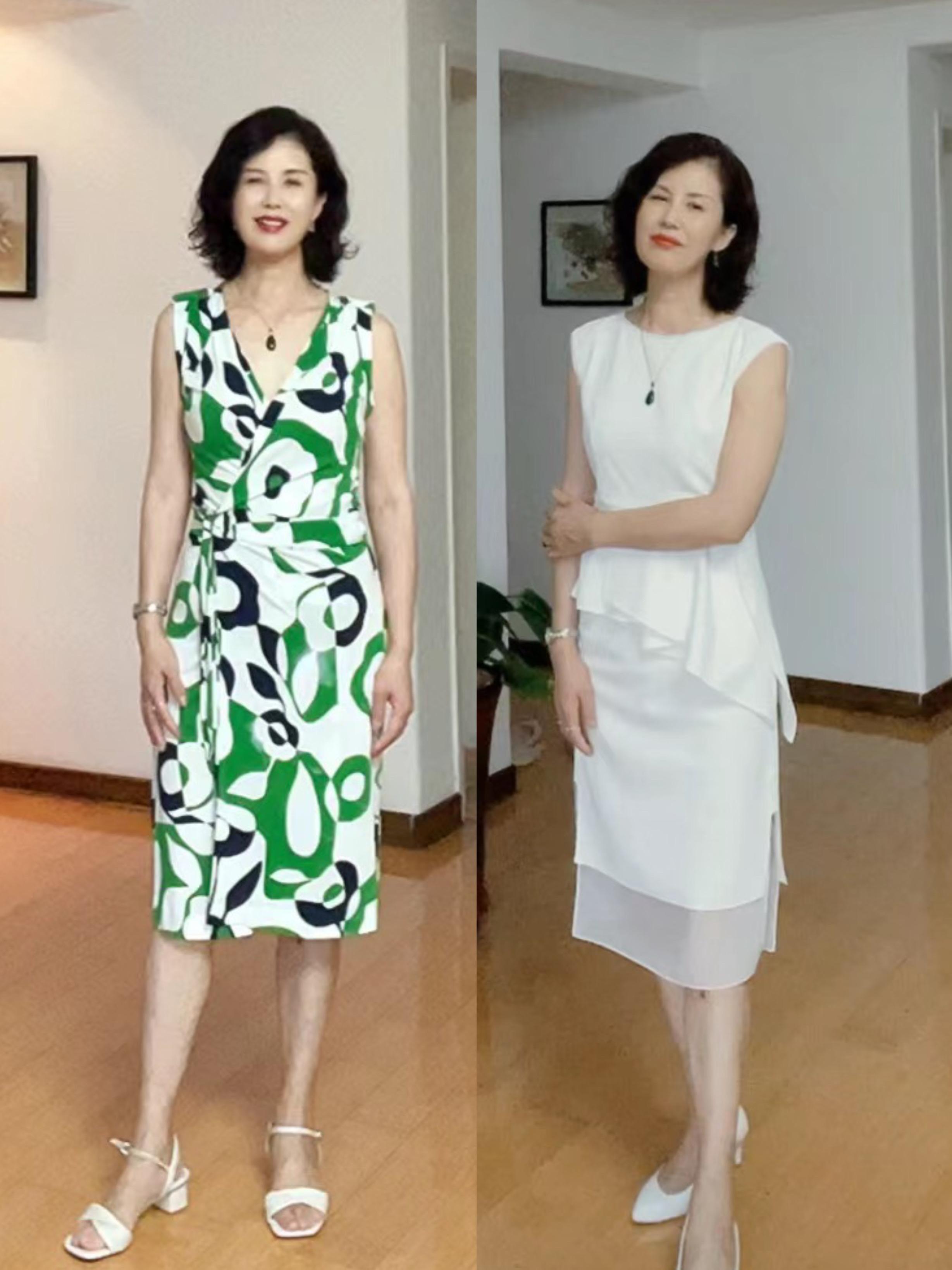 想這位阿姨一般,只利用了腰線的塑造和強化,就營造出更完美的比例。