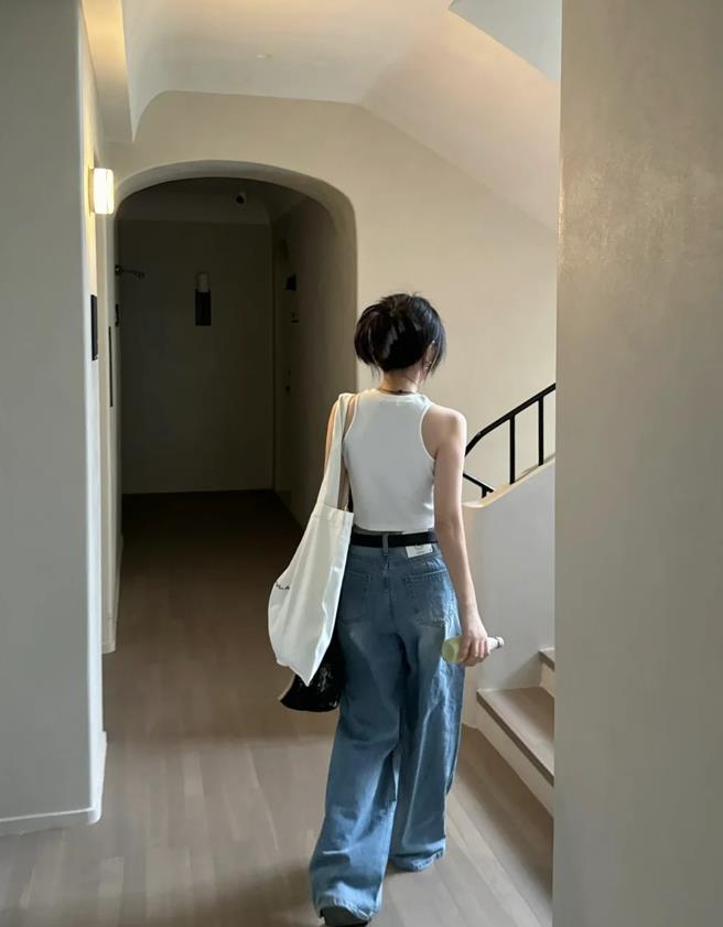 像這麼一件背心,可是很百搭的,既可以配裙子,也能搭配起一條褲子,牛仔褲就是很不錯的選擇。