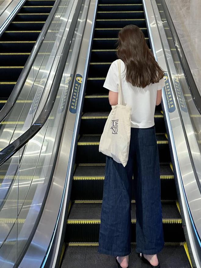 T恤的面料是純棉的,透氣性還不錯,版型也很好,穿在身上很舒適,遮肉還顯瘦,搭配起牛仔闊腿褲,顯瘦效果簡直不要太好了。