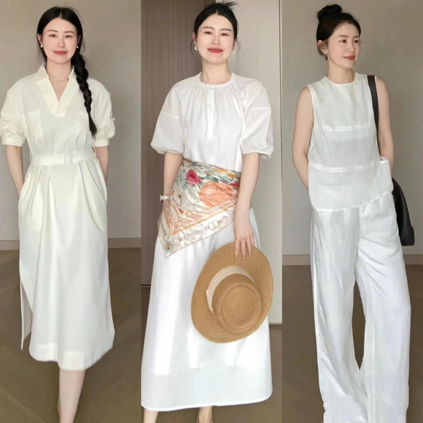 極簡風的白色連衣裙,或者白色套裝,都可以通過少許的細節來營造時尚感。