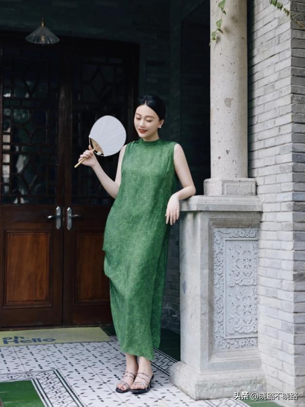 想讓造型看起來更加抓人眼球,可以直接選擇低飽和色的綠色長裙。多選擇線條流暢乾淨的,可以瞬間延長我們的縱向身材曲線,也能降低撞衫率。