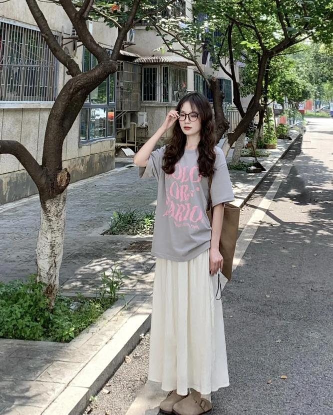 喜歡鬆弛感穿搭?也喜歡隨性範?那麼這一套正好可以滿足你,寬鬆簡約款的短袖t恤,搭配白色半身長裙,韓系範十足,還不失慵懶的調調,上下都是寬鬆的版型,最藏肉顯瘦了,穿得舒適自在又顯瘦。