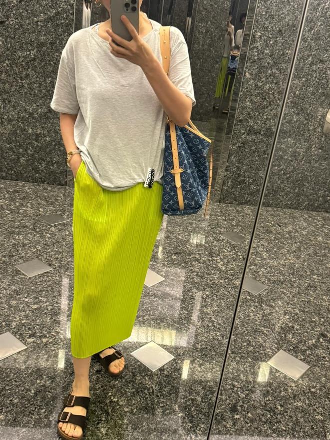 半身裙可是很多女性們喜歡的裙子,但一定不能選錯顏色了,特別是鮮豔刺眼的熒光綠色,不僅難以搭配,還給人一種過於浮誇的既視感,也是最容易穿出土氣感的一個色調。