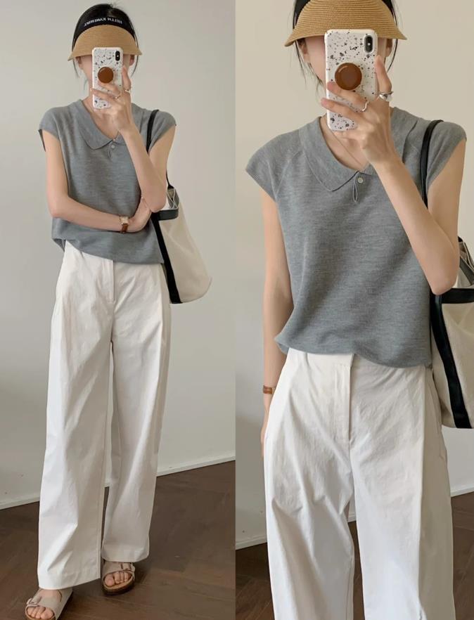 夏天的穿搭就是要簡簡單單啊,黑白配的組合,怎麼看都不容易過時,上短下長的搭配,最適合個矮的女生們穿了。無袖背心,悶熱的夏天穿起來,可清爽涼快了,褲子的垂墜感和版型都很正,誰穿都顯瘦顯腿長。