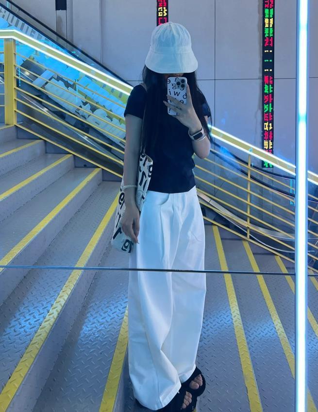不過有人說了,白色闊腿褲穿起來很容易顯胖,我覺得這都是因爲你沒有選對款式而已!只要你注重下褲子材質,以及款式,那麼就可以穿得很瘦。