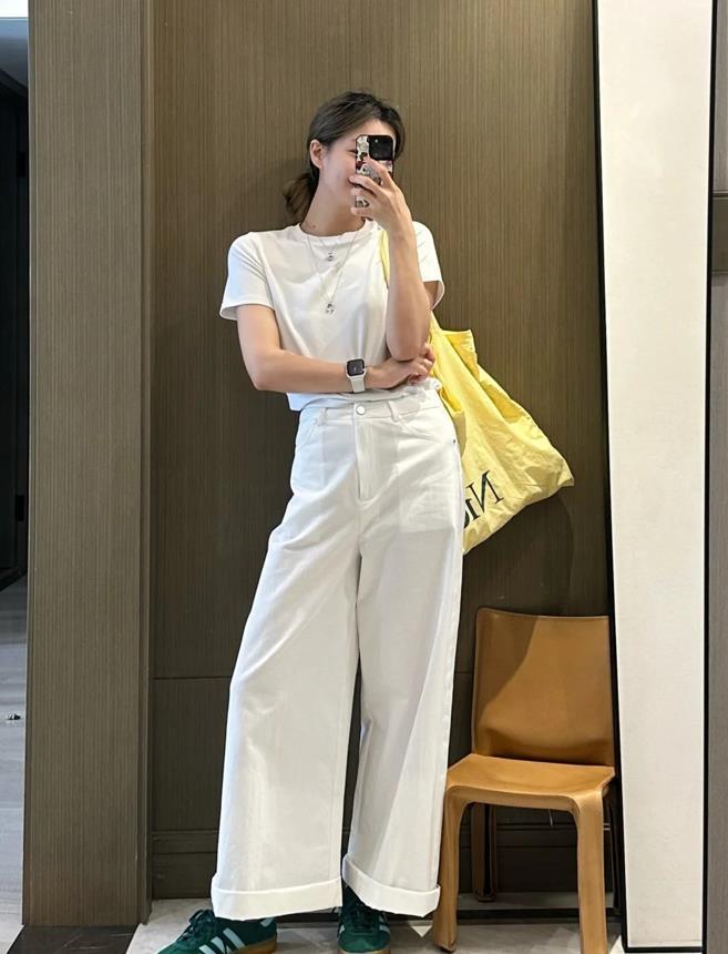 梨形身材的姐妹,說什麼也要試試這一條白色牛仔闊腿褲,簡直是你衣櫥裏的必備款,和黑色一樣,都是超級百搭的,乾淨又清爽的顏色,在視覺上也能起到很好的降溫效果。