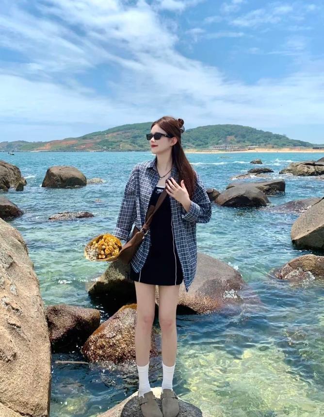 適合春夏季節的勃肯鞋,半拖的款式,加上包頭設計,對於腳型沒有一點約束感,姐妹們可以大膽入手。防曬衣和半身短裙的組合,真的太好看了,清爽又涼快。