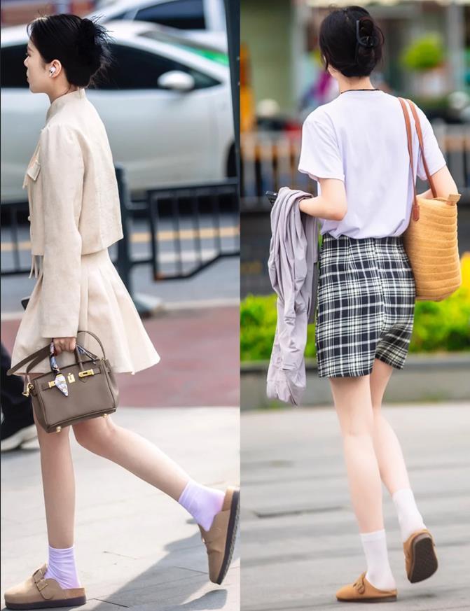 夏季除了建議選擇涼鞋來穿之外,你也可以爲自己入手一兩雙半拖鞋,包頭勃肯拖鞋,對於懶人來說,自然也是非常友好的。這種鞋子,對腳型很友好,讓穿上的人更舒適自在,搭配一雙白色襪子來配,增加層次感又時髦。