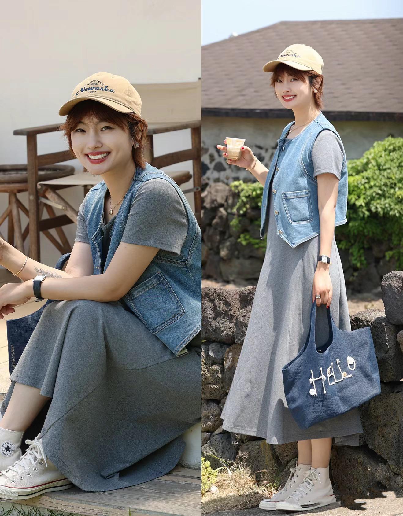 牛仔馬甲,屬於非常考究精緻的款式。短小設計的牛仔馬甲,抬高腰線、弱化年齡,讓穿搭洋氣耐看。