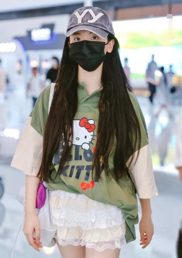 楊超越真的是年輕女孩的穿搭代表,這一套極繁主義的搭配,真的繁而不雜,鬼馬又可愛,看似很難駕馭的衣服和風格,卻被她完美的消化掉,上衣是一件撞色的t恤,寬鬆的版型,可以穿得很舒適自在。