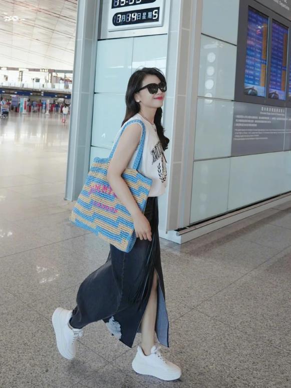 劉濤的這一身機場穿搭,看着就很不錯啊,白色無袖衫+黑色半身開叉長裙,記得要提高腰線比例,這樣纔有助拉長腿部線條,踩着一雙白色厚底運動鞋,又讓整個着裝多了幾分休閒和輕鬆的氣息。