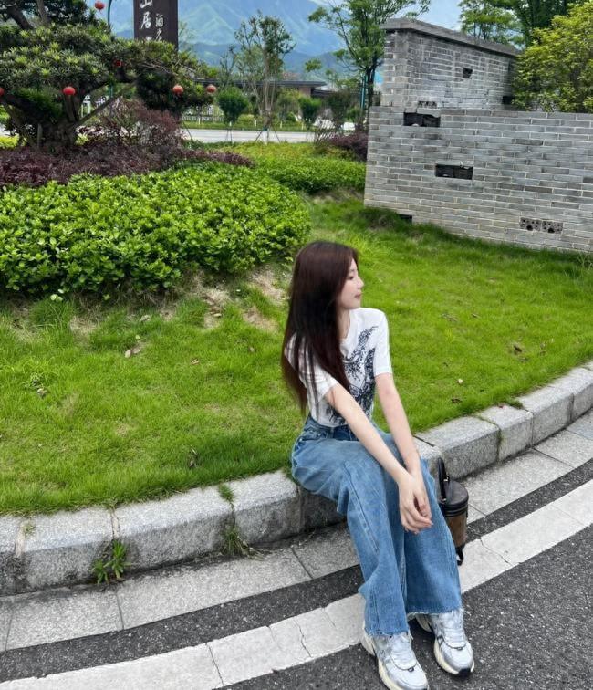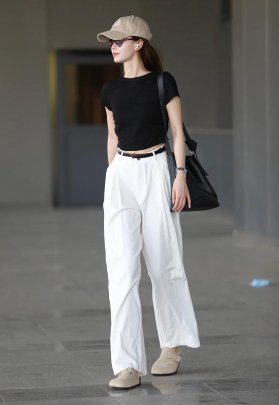 對於小個子女生來說,穿搭上一定要注意下腰線的塑造等,可以將t恤塞進闊腿褲裏,或者是選擇短款的t恤來配,這樣就可以很好拉長腿部線條了。