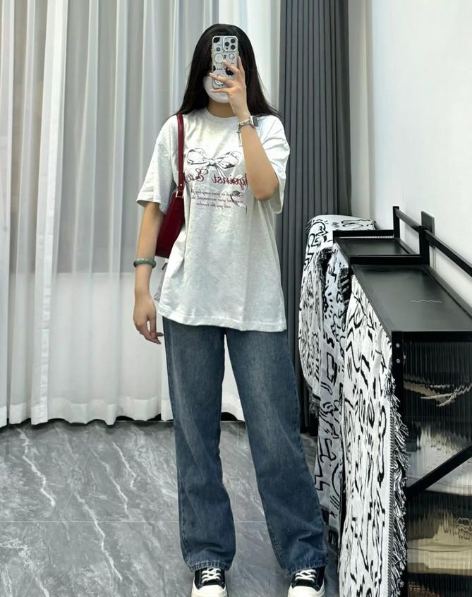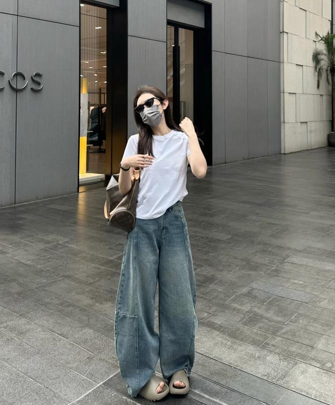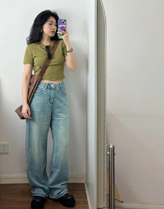 150+女生可以借鑑起來的穿搭,高腰且修身的短款t恤,搭配寬鬆牛仔褲,這簡直是梨形身材女生的最佳搭配啊,褲子的垂墜感很棒,穿起來可顯瘦顯腿長了。