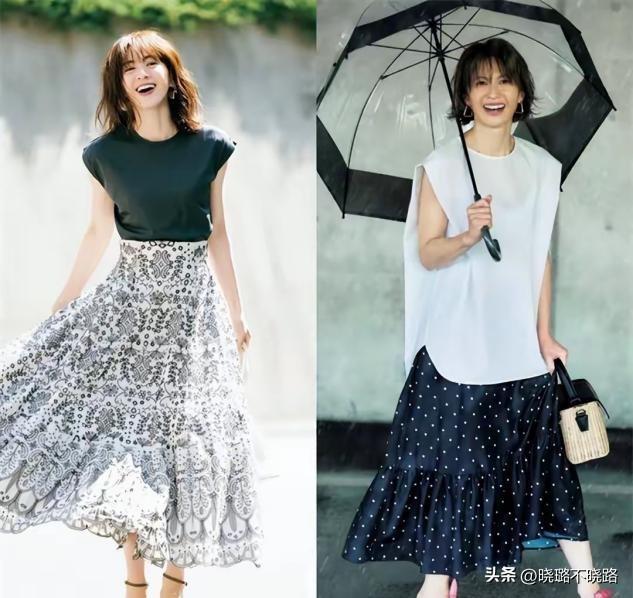 無論是收緊的裙襬還是放鬆的裙襬,我們或多或少都要講究你的身材鬆緊比例的對比,卡腰的線條是必不可少的,這是你穿裙子女人味的來源。