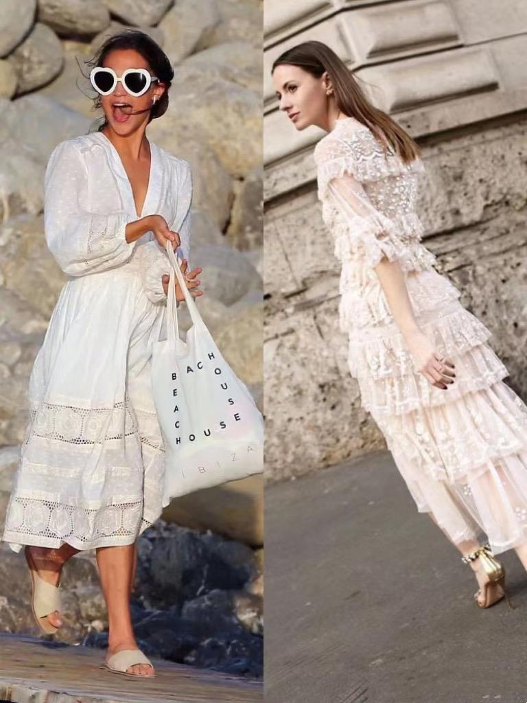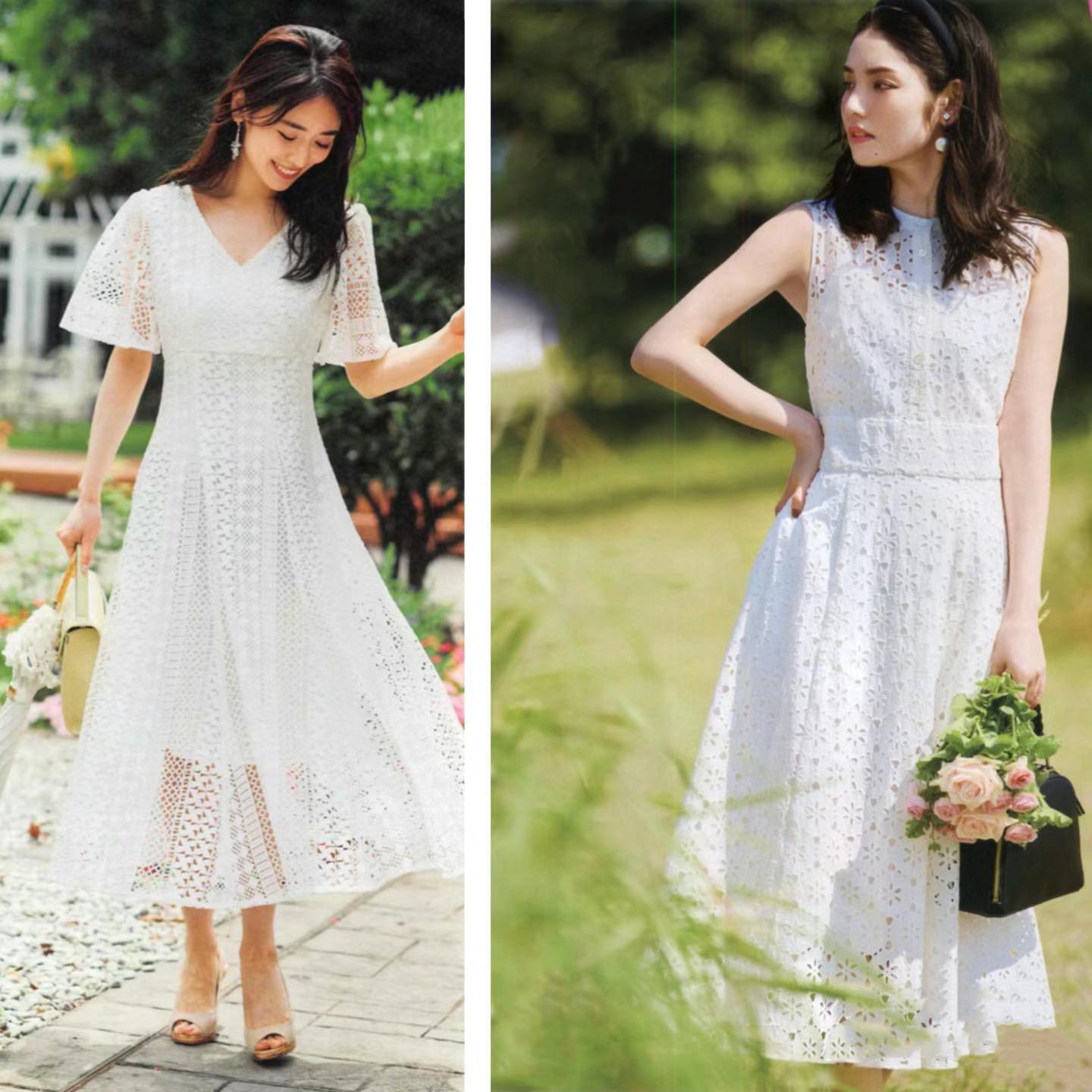 白色連衣裙,可以選擇雙層鏤空設計,營造出輕盈感。