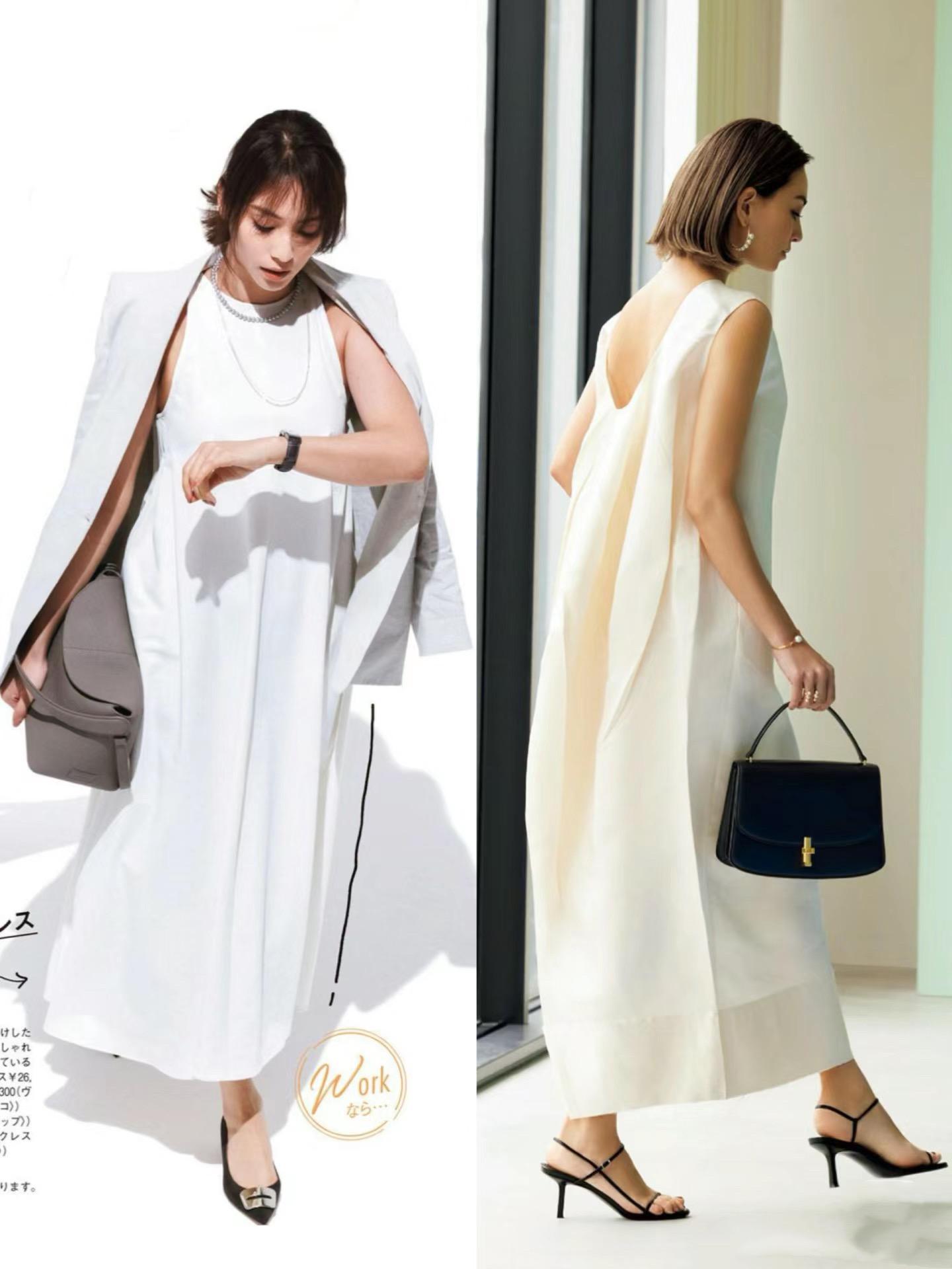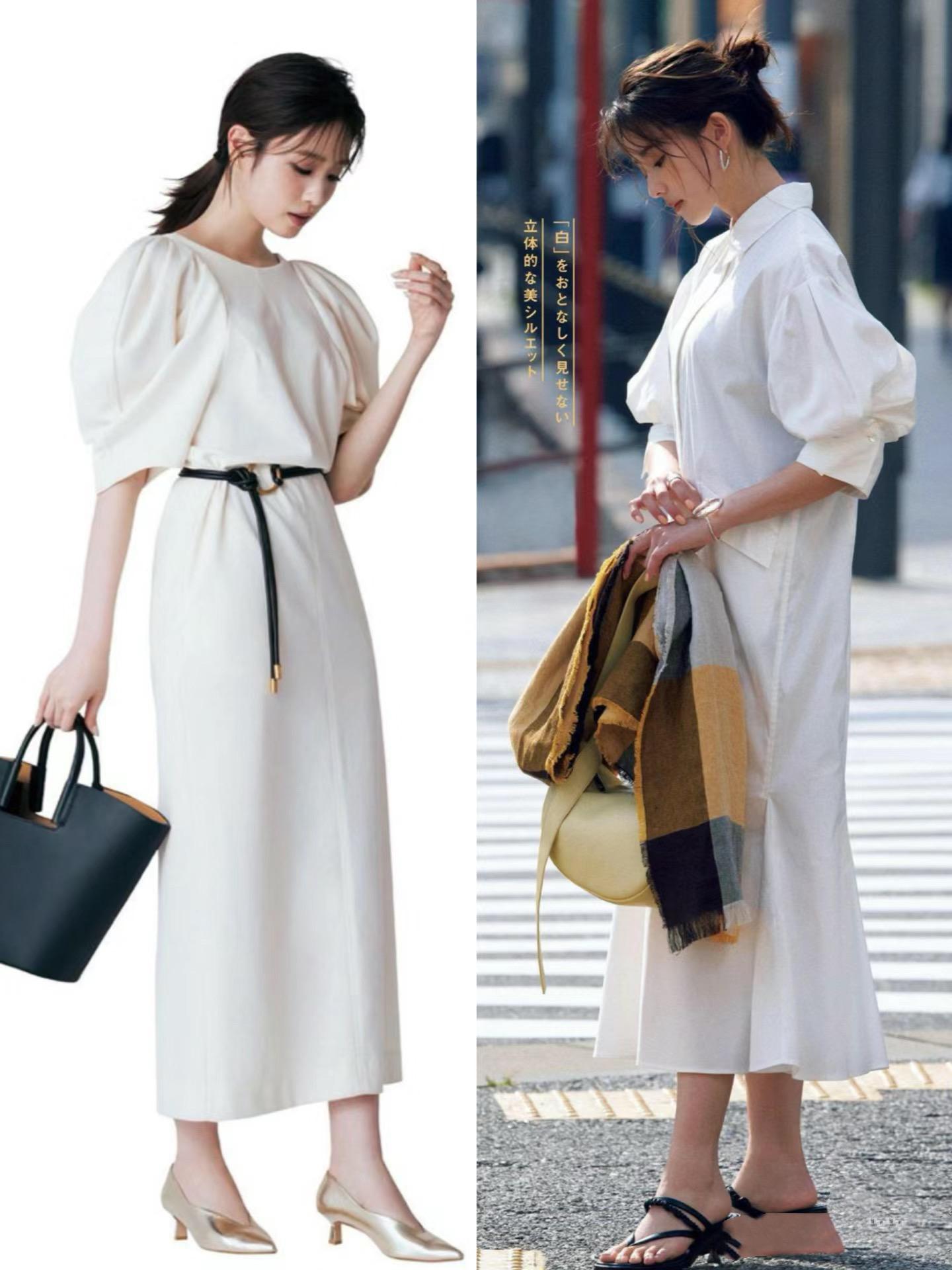白色連衣裙,屬於基礎單品,搭配上不易出錯。