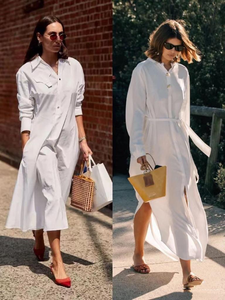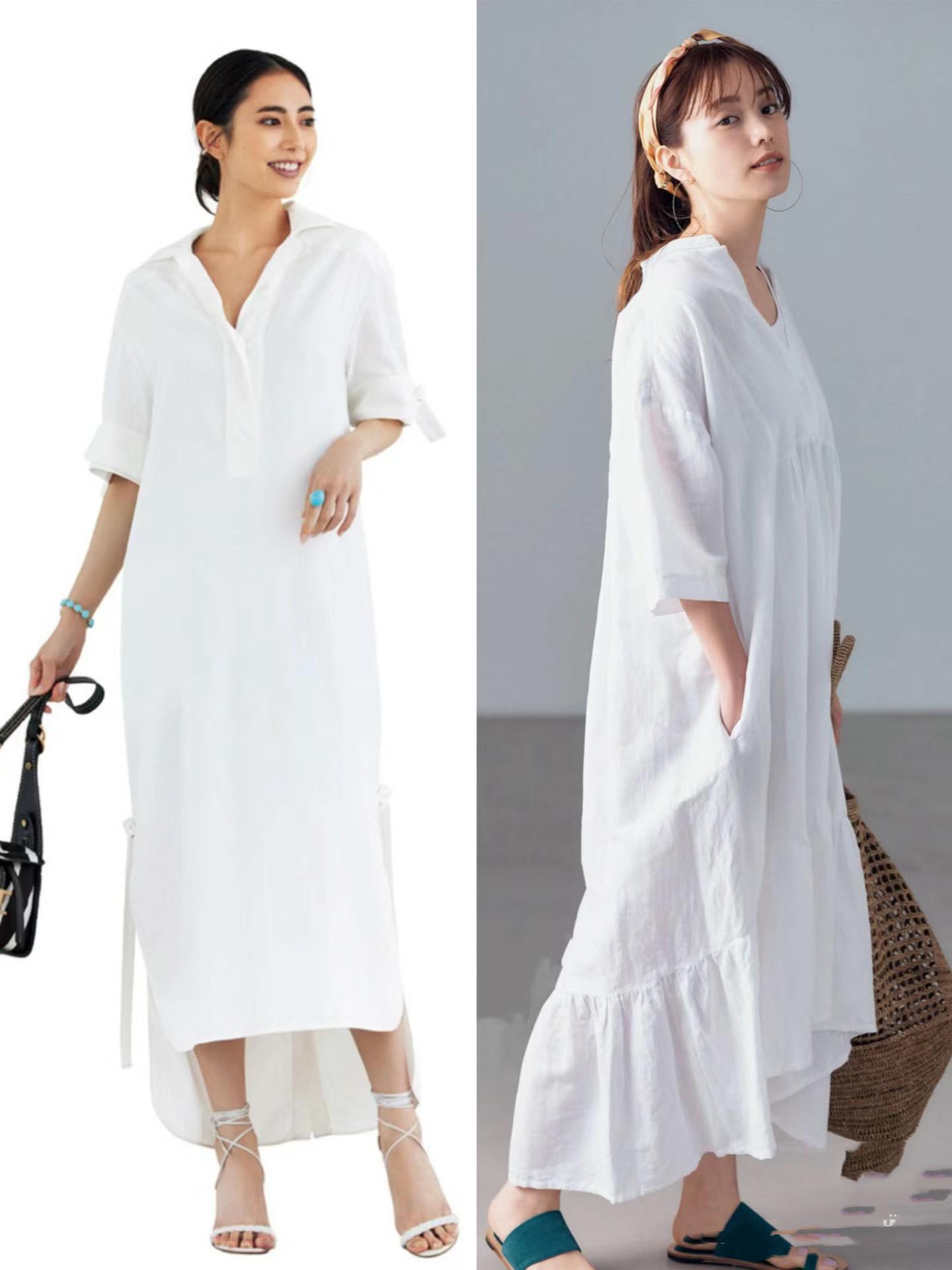 成熟女性、職場女人,都可以穿着版型寬鬆的白色襯衫連衣裙。