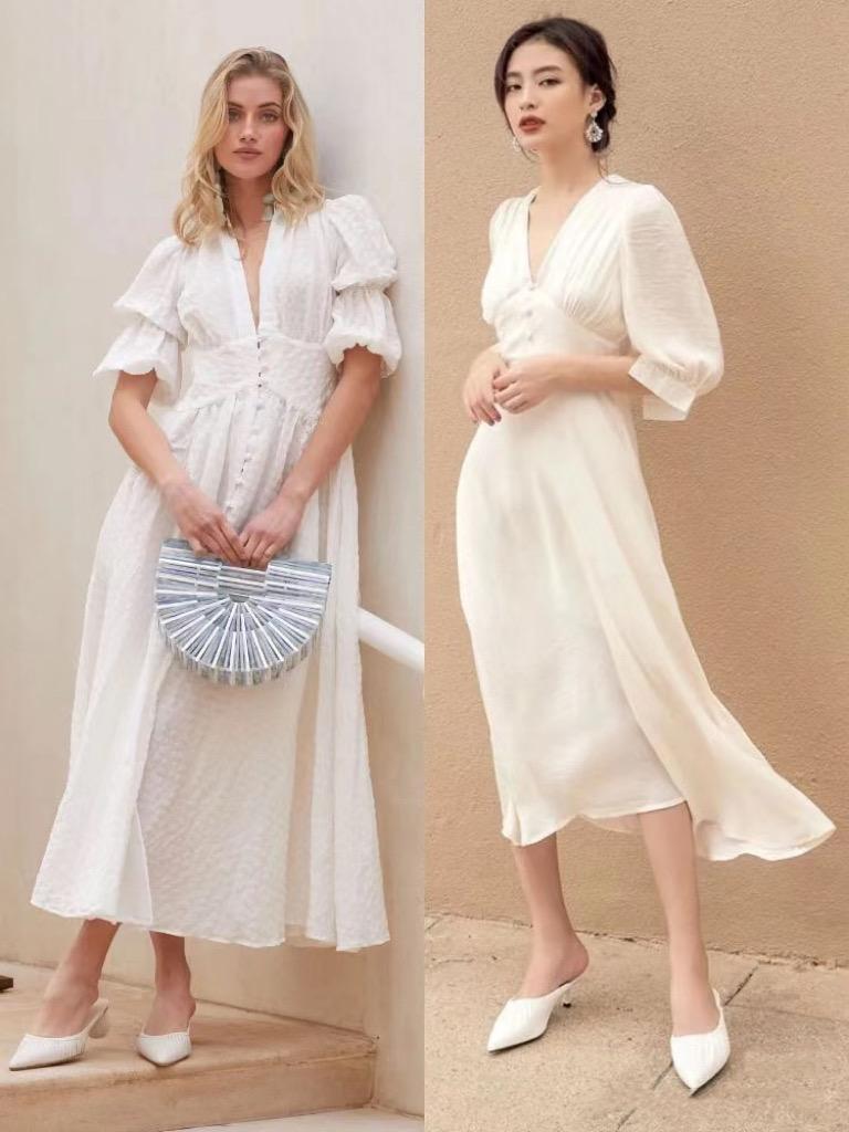 白色連衣裙,增加泡泡袖的點綴,原來還可以如此的浪漫考究。