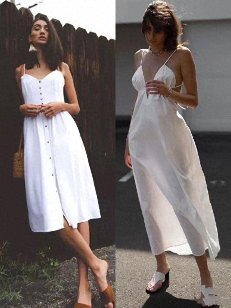 吊帶款白裙,配輕便的拖鞋,鬆弛中帶一點小性感。