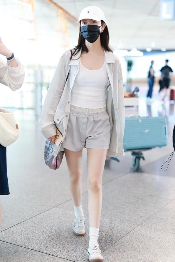 宋妍霏真的是很會穿啊,她這一套同色系的搭配,可太時髦有型了,一件淺灰色襯衫,內搭白色小背心,下裝再配上一條灰色短褲,鞋子和帽子都選擇了白色,加上一雙運動鞋後,整體看起來休閒隨性又自在。