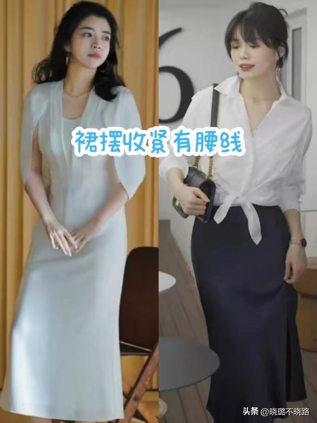 腰臀部分的線條輪廓對比是女人穿裙子的視覺重中之重,一條優質的腰線打造,絕不僅僅是收緊那麼簡單,我們還要學會去如何放置你的腰線高度,爲了更好的去抬升你的腿長起點,我們可以把你的腰線位置儘可能貼近你的胸部下方,打造出視覺上更高的腿長起點,這樣纔是足夠顯瘦的。