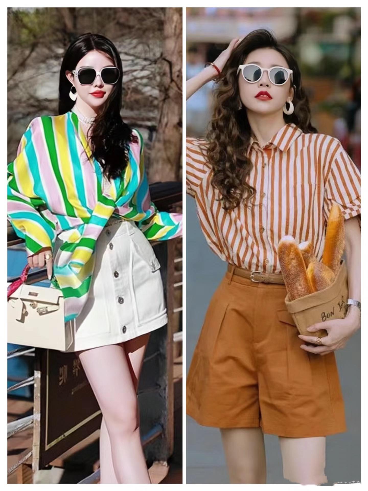 比如彩虹色的條紋襯衫,或者橘白色的條紋襯衫。