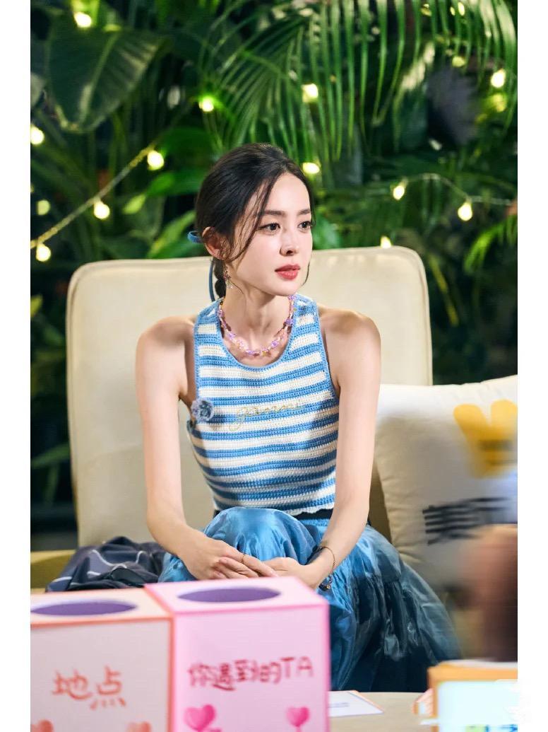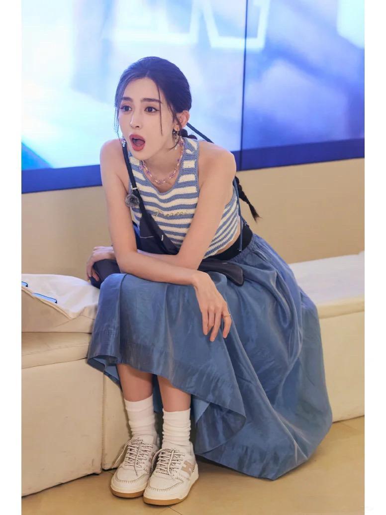 藍白條紋的小背心,配藍色半身裙,溫柔又嫺靜。