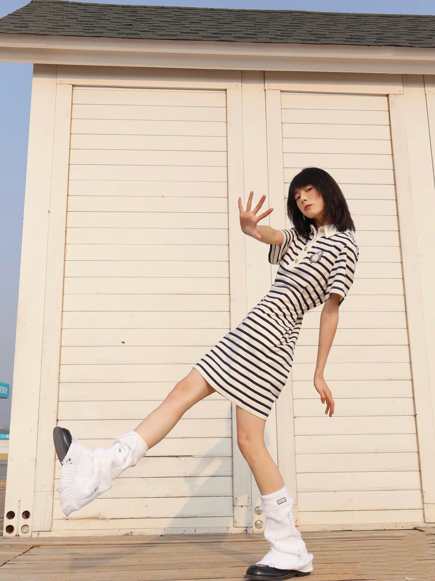 尤其是條紋連衣裙,穿上身瞬間有了少女風情。